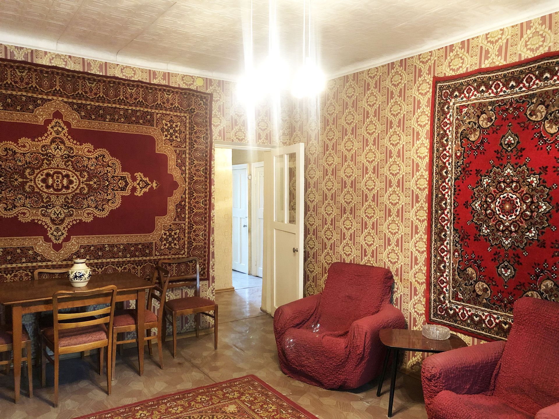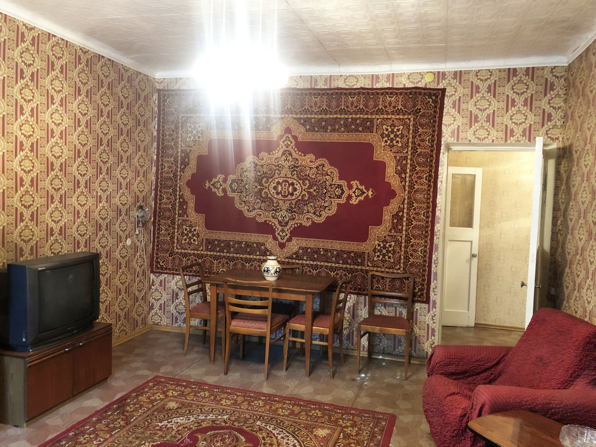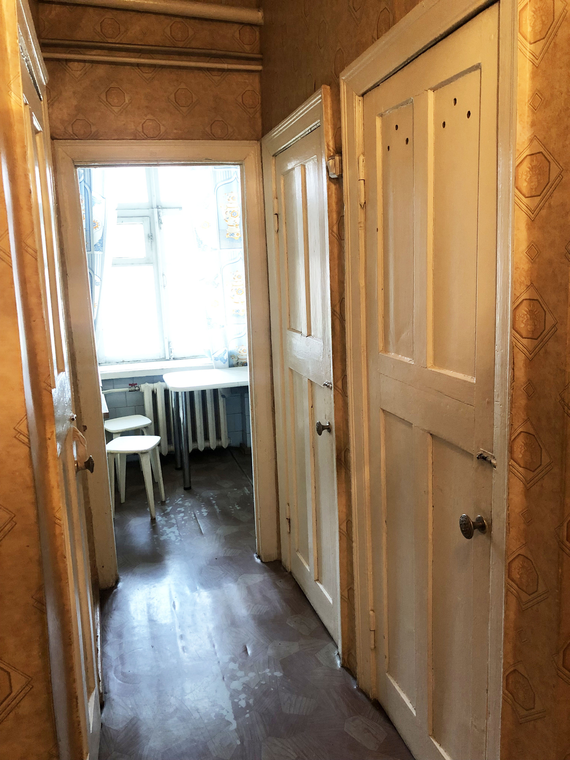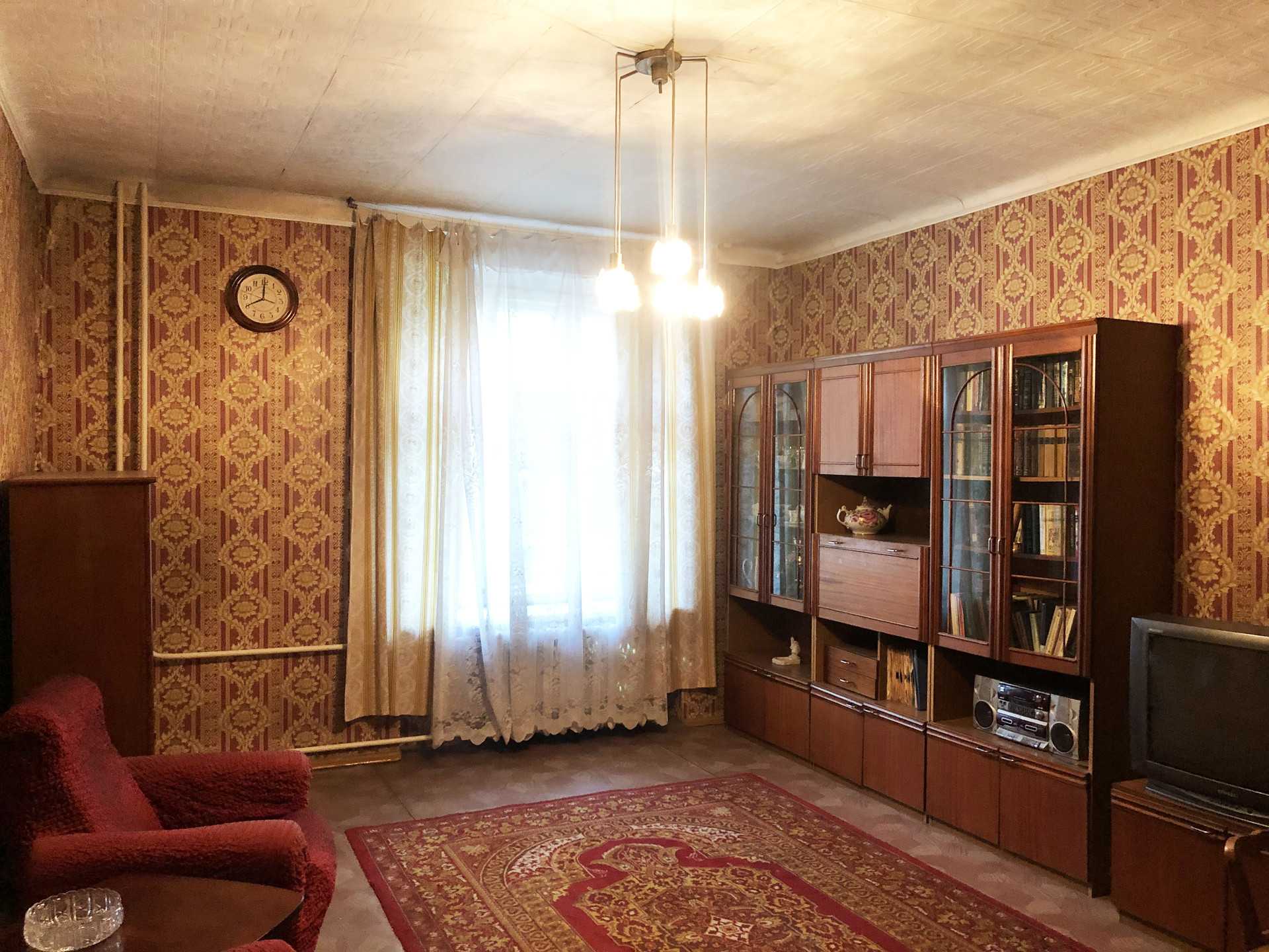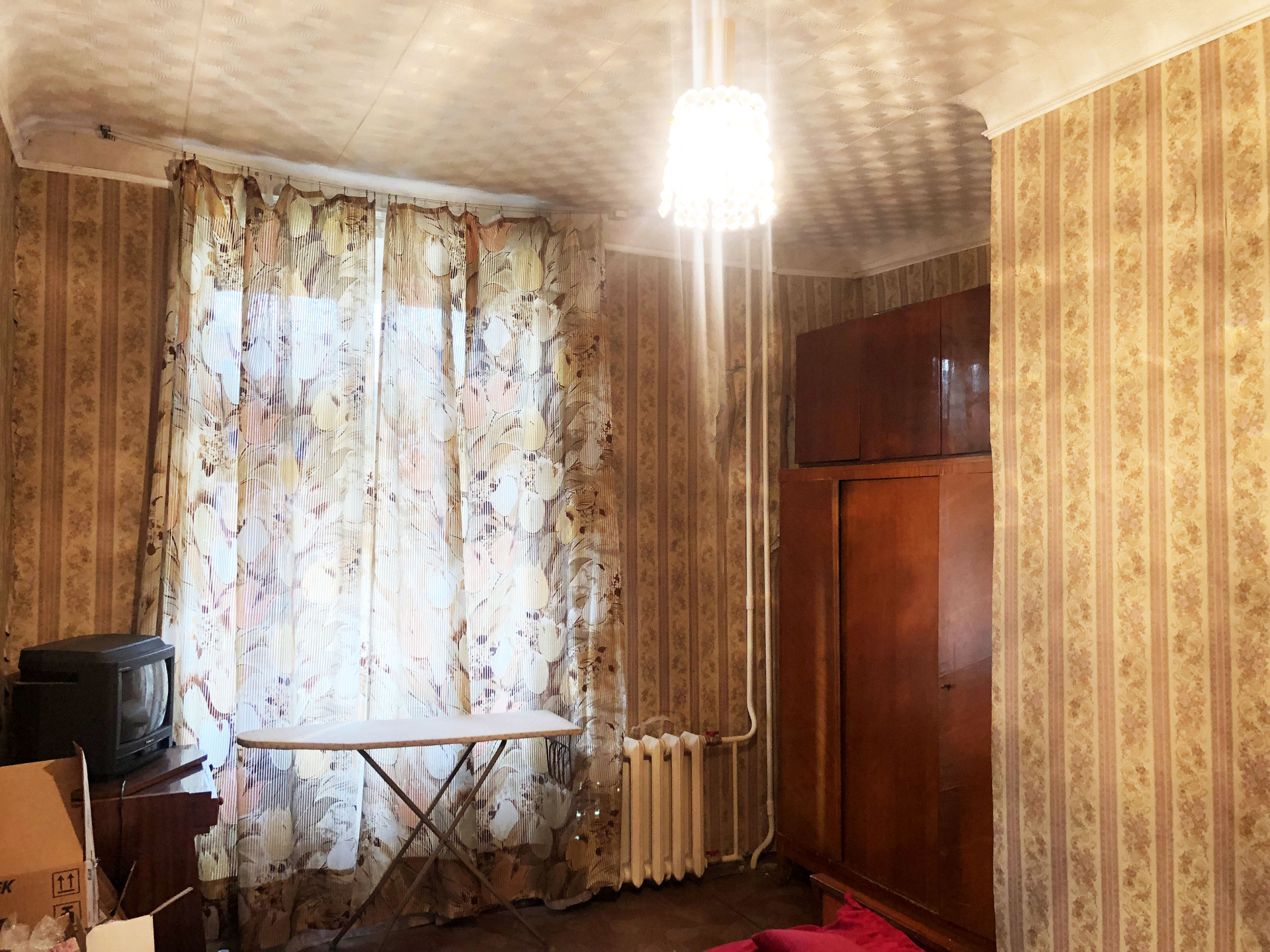 Квартира в жилом состоянии "после бабушки". Комнаты большие, изолированные, высокие потолки 3 метра. Есть балкон. В доме меняли водопроводные трубы и батареи отопления.
