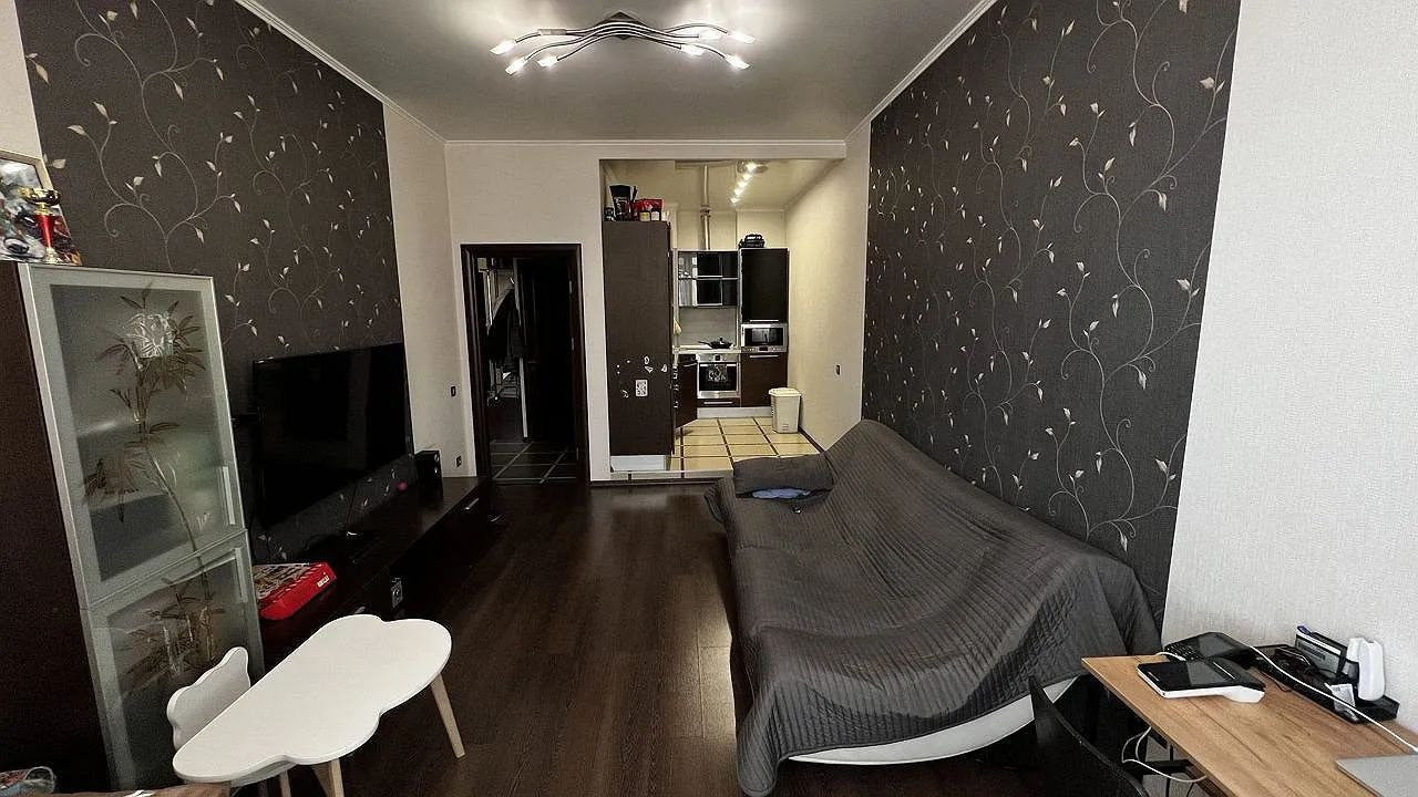 ЖК "Мегаполис". Квартира с мебелью и техникой. Изолированная планировка. Сан.узел раздельный. Кухонная зона. Кондиционер, бойлер. Высота потолков ТРИ метра. Отличное расположение дома вдали от дорог, ни шума, ни пыли.
