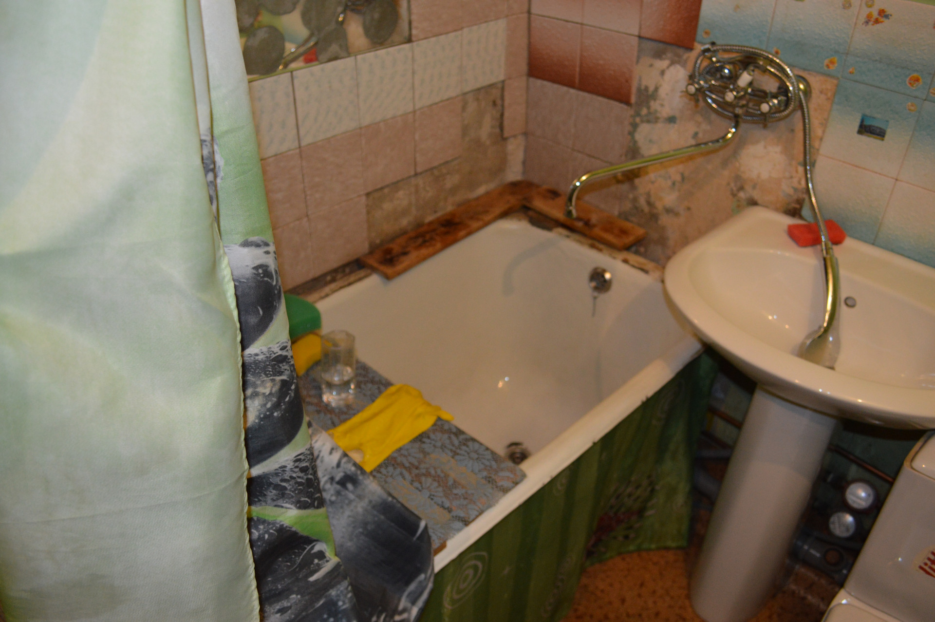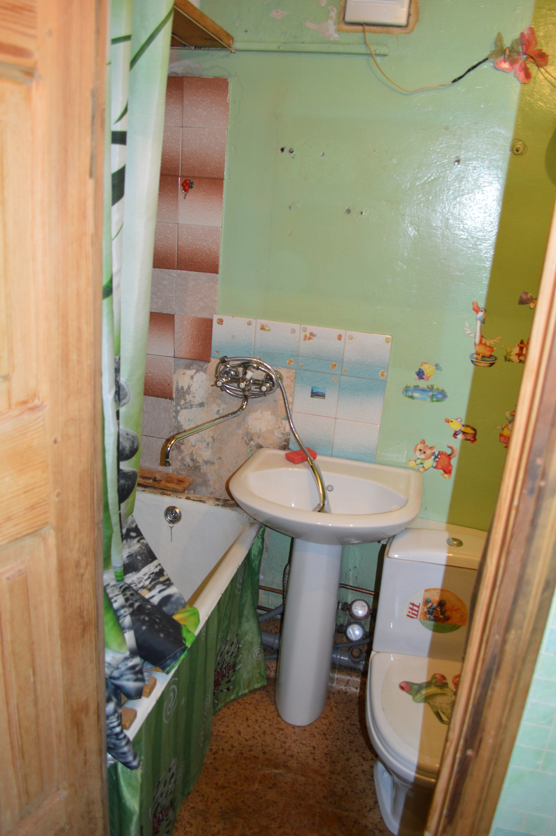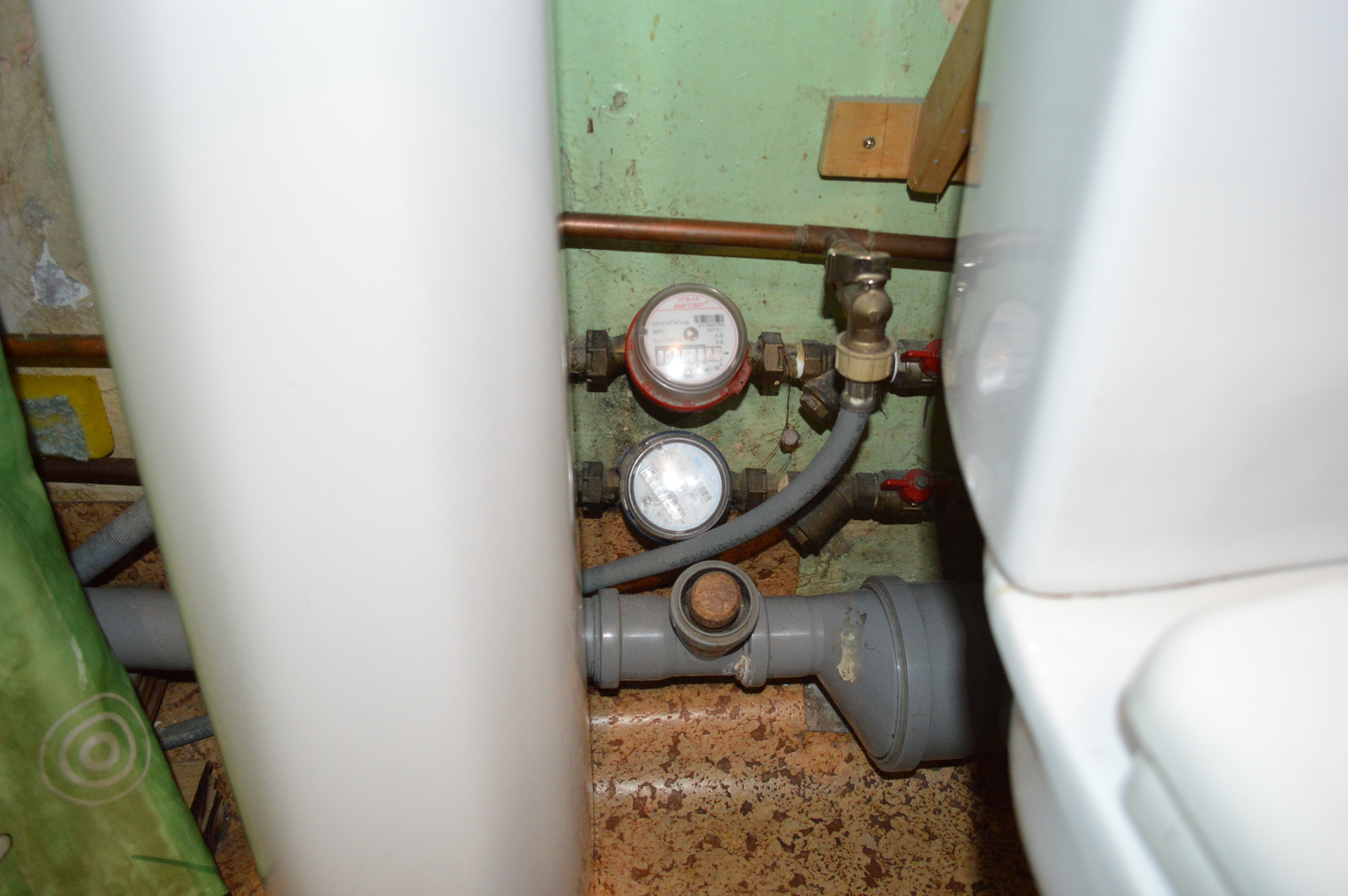 Установлены счётчики на воду,выведены шланги под стиральную машину