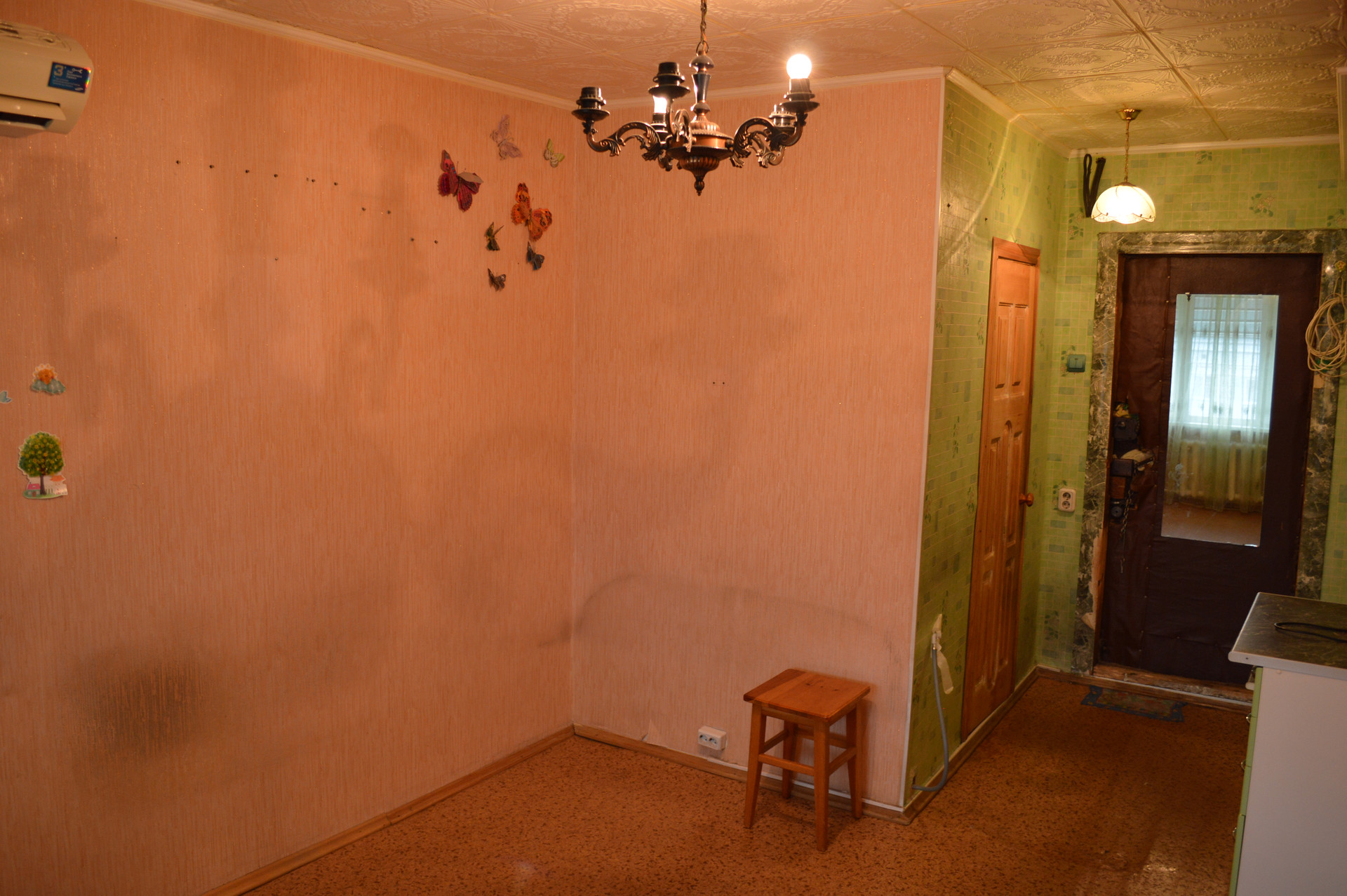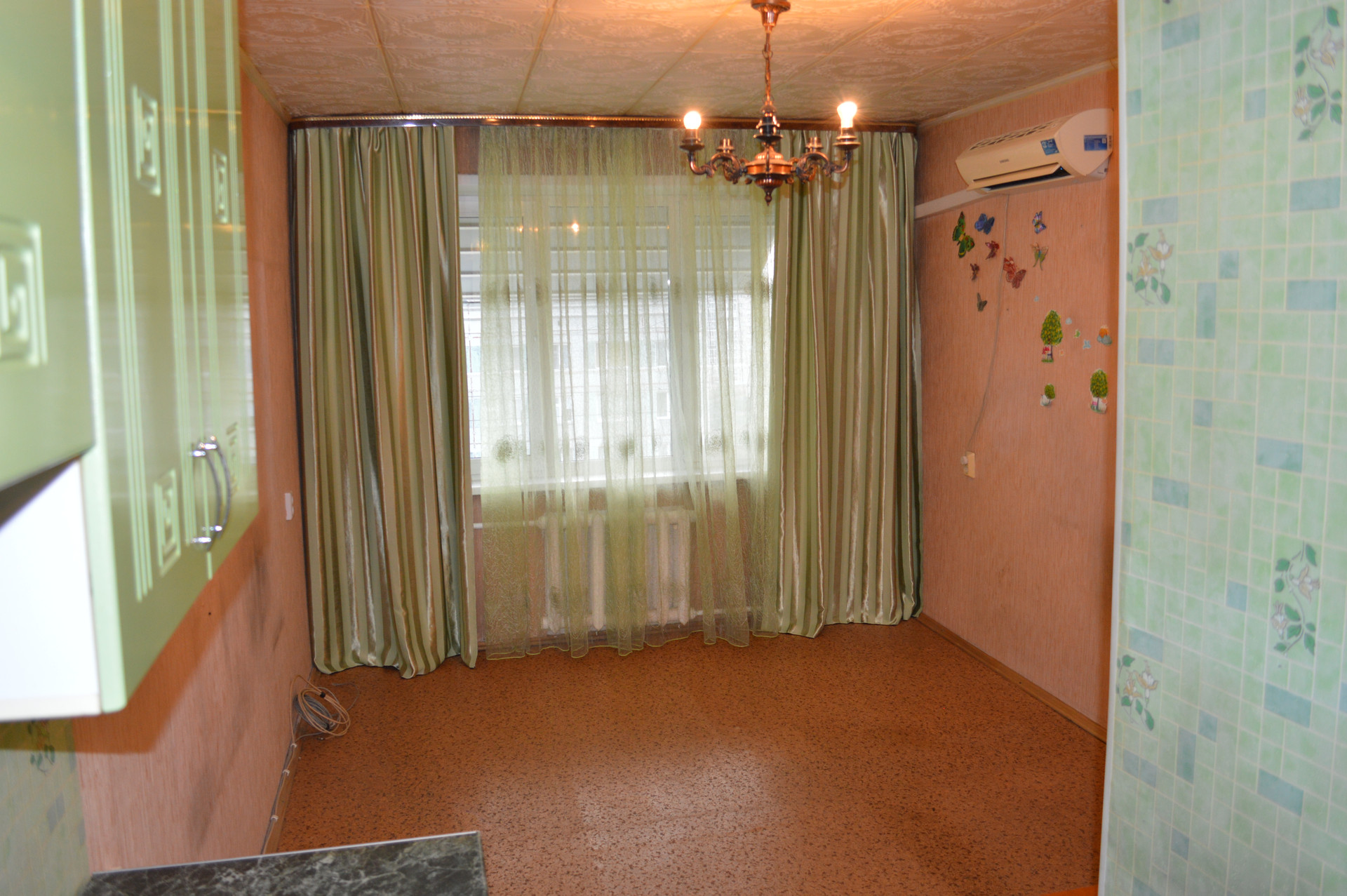 В квартире остается кухонный гарнитур в хорошем состоянии и кондиционер