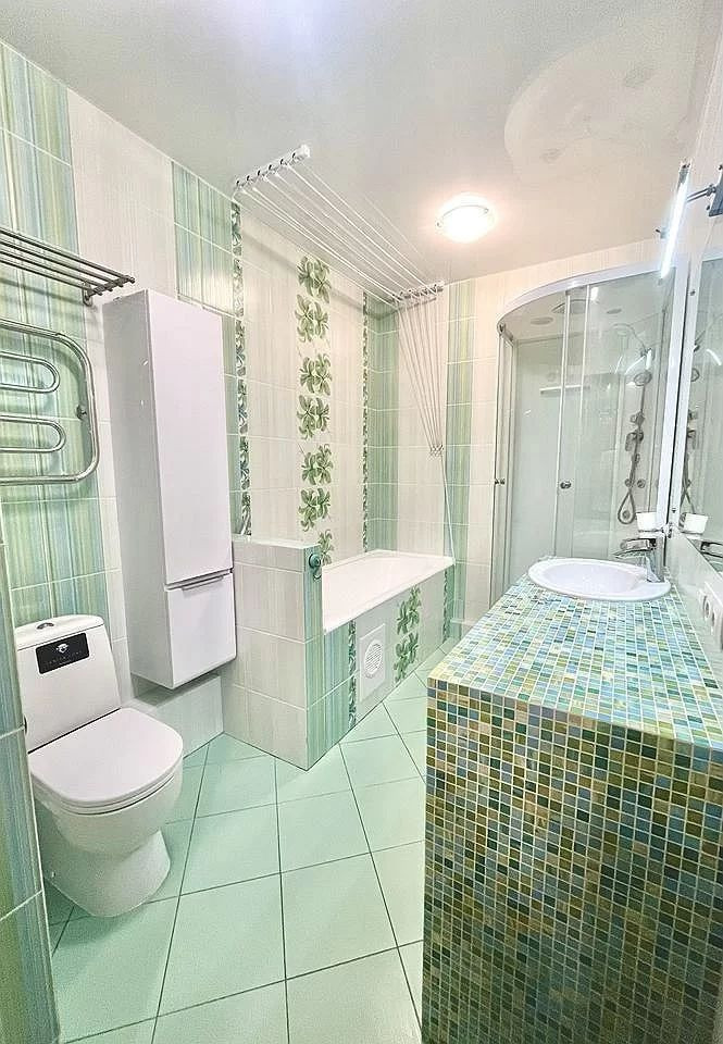 В ванной комнате на полу и стенах кафельная плитка, новый санфаянс, медная разводка горячего и холодного водоснабжения, счетчики воды, хромированный полотенцесушитель, теплый пол, ванна, душевая кабина. Торг обсуждается непосредственно между Собственником квартиры и Покупателем напрямую, всё предельно прозрачно, указана цена Продавца и комиссия.
