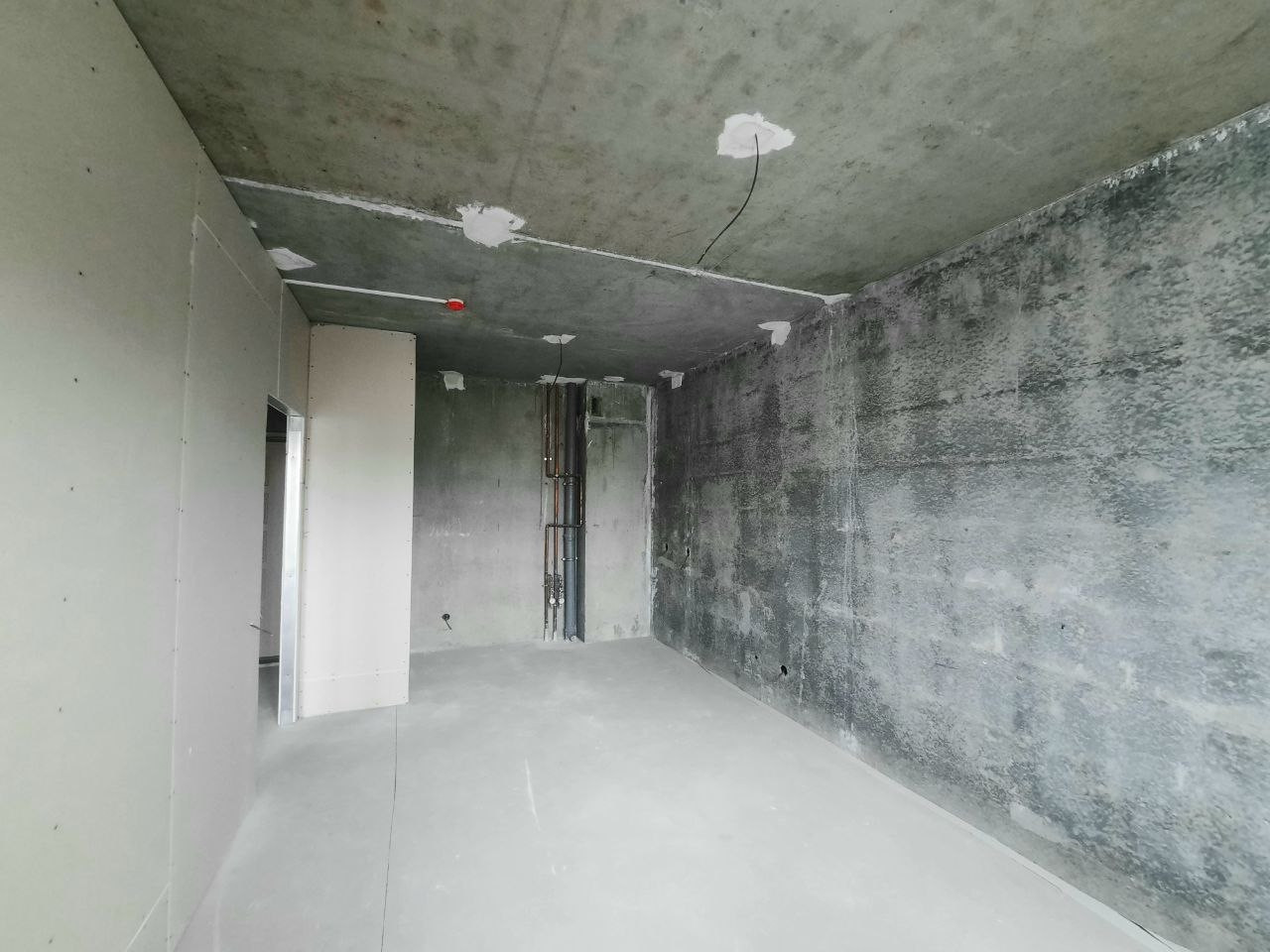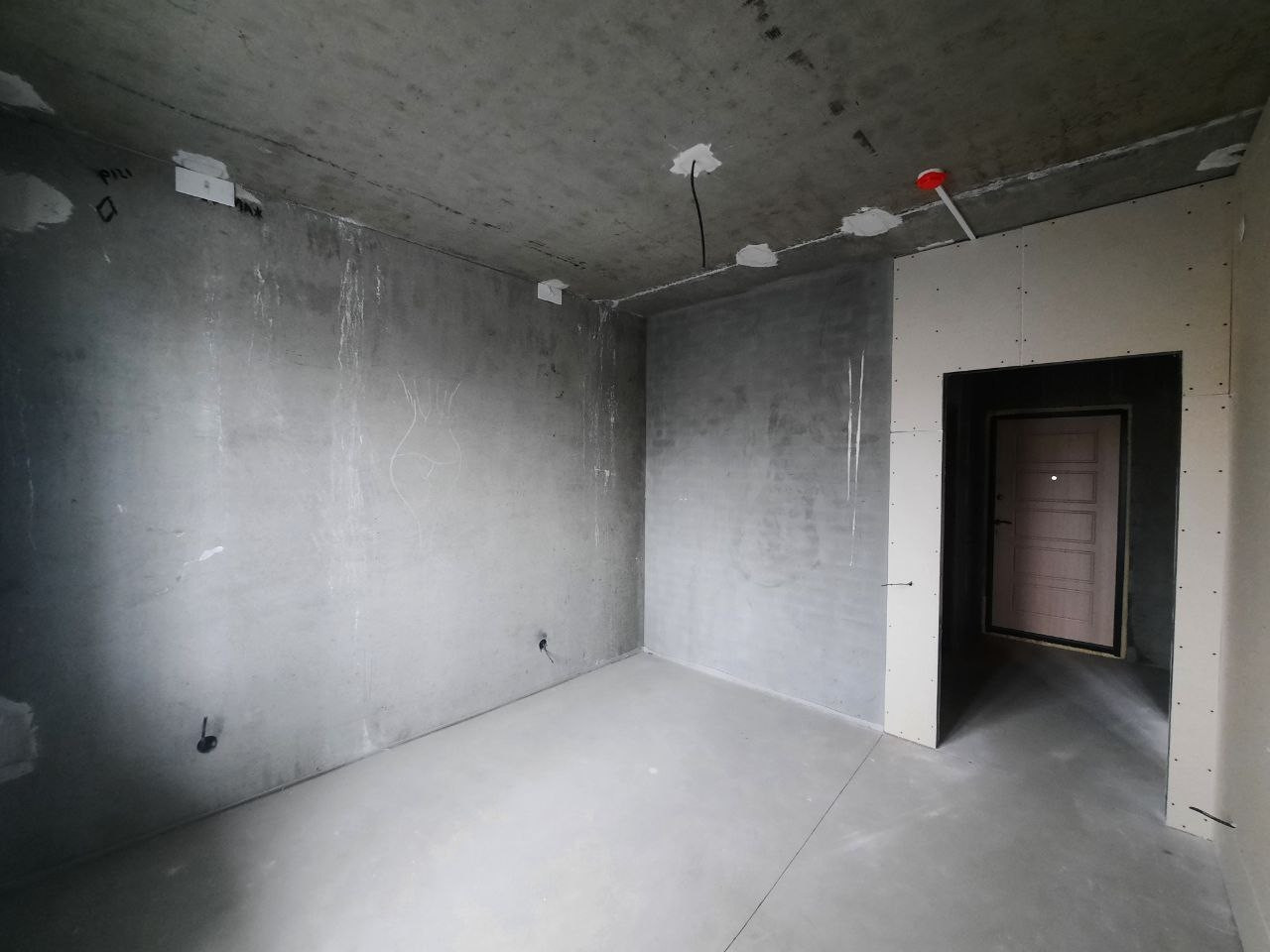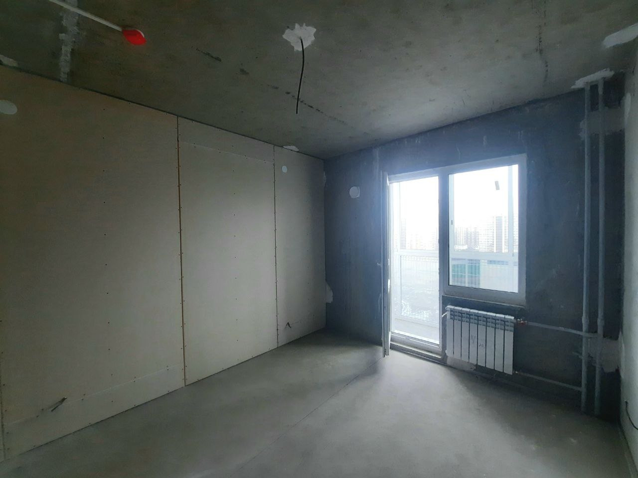 В квартире выполнена черновая отделка - проведены электромонтажные и сантехнические работы, перегородки, установлены радиаторы, водосчетчики, полотенцесушитель в уборной. На полу- стяжка, балкон остеклен. На входе хорошая качественная дверь.