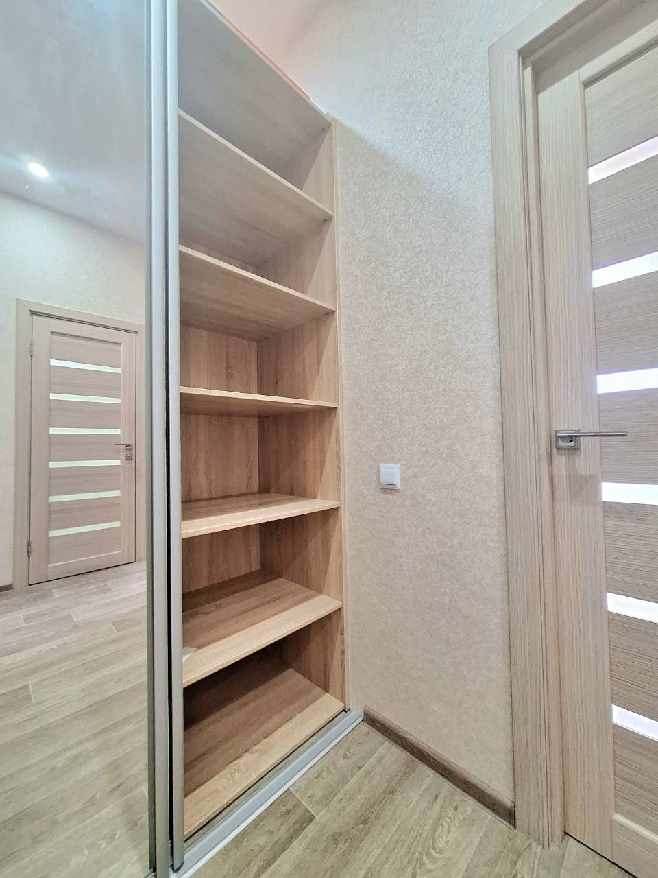 Планировка квартиры - евродвушка. Изолированная спальня и кухня-гостиная. Безупречное состояние. Коридор оснащен встроенной гардеробной премиум-класса. Совмещенный сан/узел отделан плиткой Kerama Marazzi.