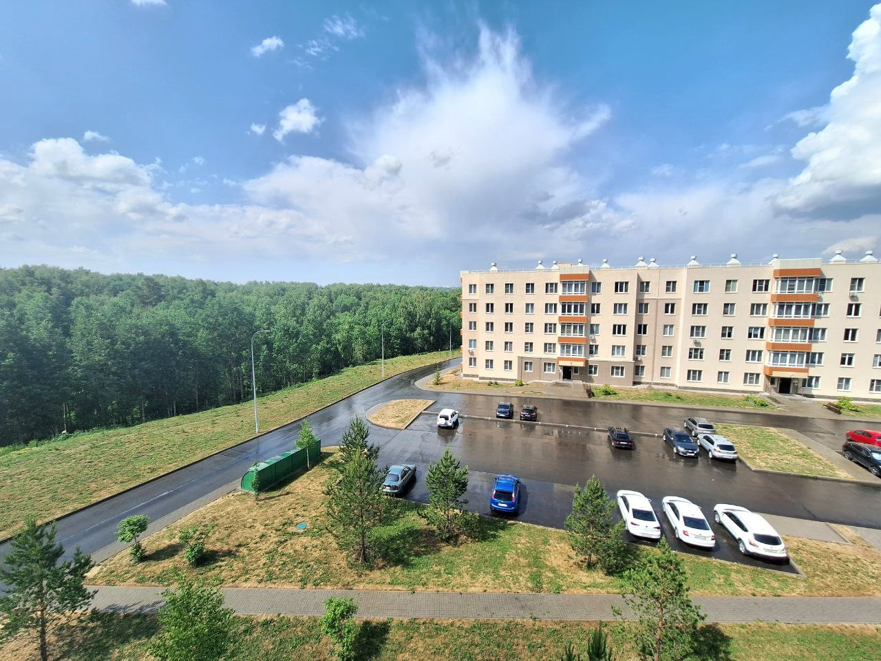 Чистый подъезд, тихие соседи, двор с детскими площадками и огромной парковкой для личного автотранспорта.