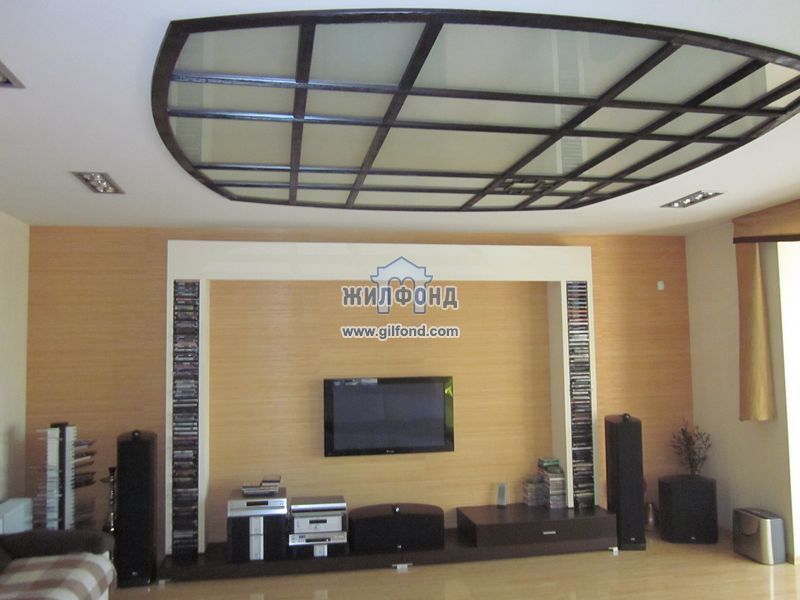 На 1 уровне: холл 40,1кв.м., гардеробная, лестница, санузел, гостинная 36,4 и кухня 17,0 кв.м., небольшой бар. Есть зимний сад.