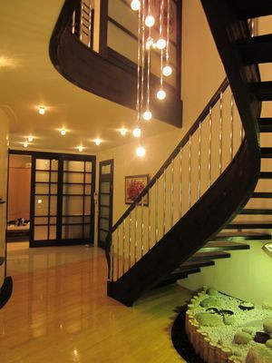 Красивая лестница на 2-й этаж с подсветкой.
