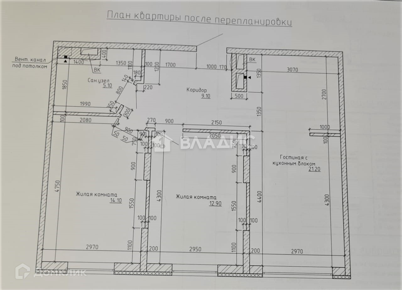 Общая площадь 65.1 м2