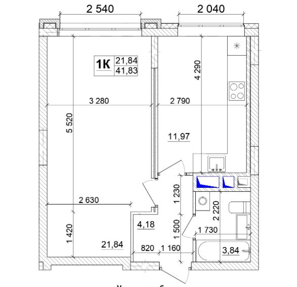 Общая площадь 41.83 м2
