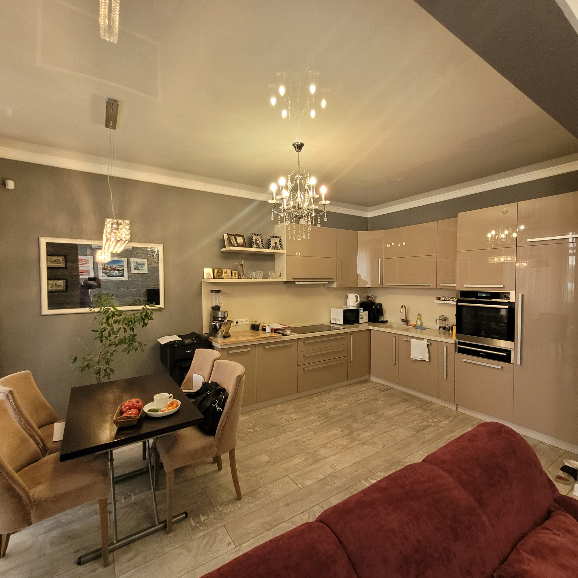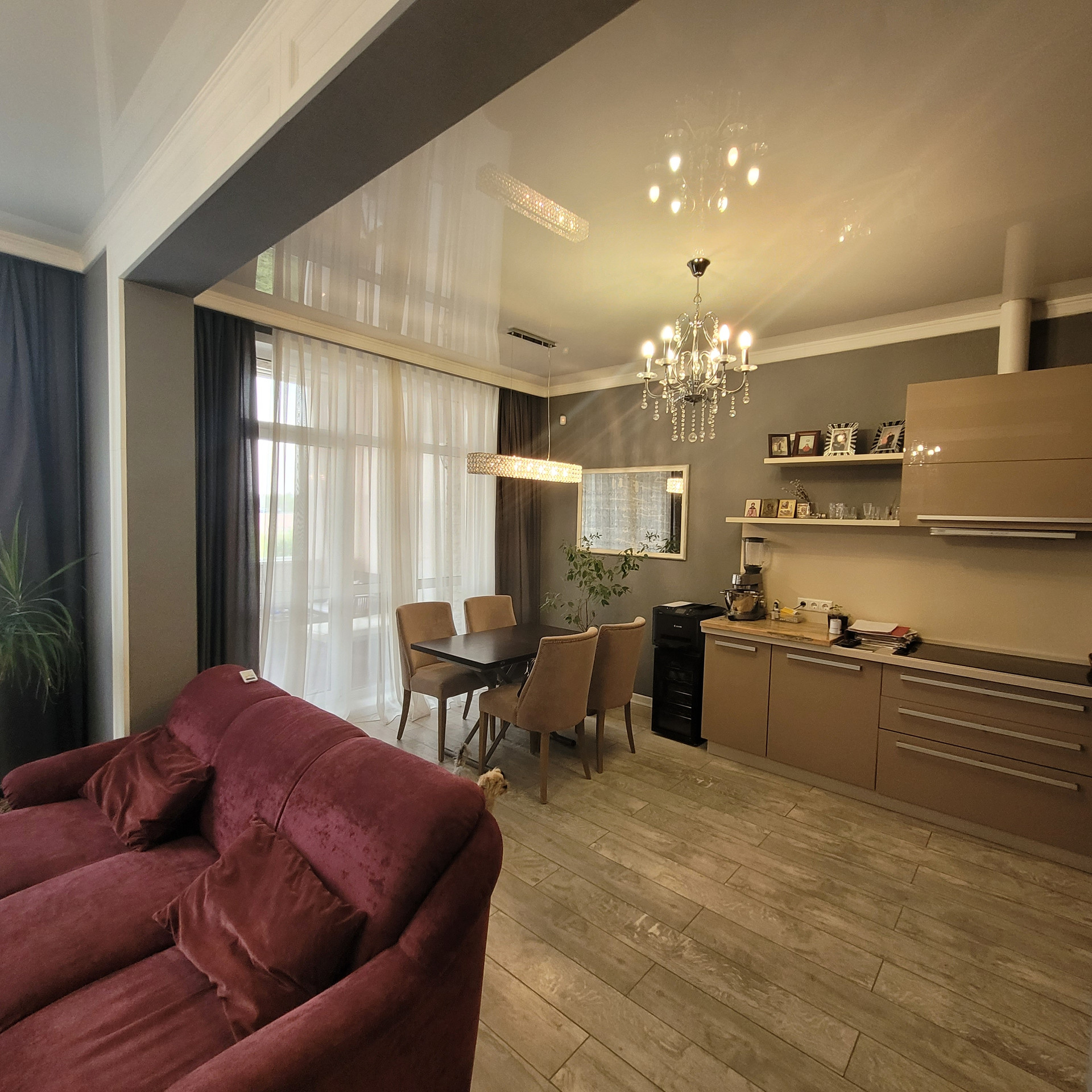 В квартире выполнен ЕВРО ремонт из современных, дорогих и качественных материалов по дизайн-проекту. Общая площадь квартиры- 114кв.м., в том числе жилая площадь- 50кв.м.(18,4+16,5+14,8), кухня-студия- 17,3 кв.м., два совмещенных санузла(8,6+5,7кв.м.), гардеробная- 8,8кв.м., и вишенка на торте- ВЕРАНДА -7,5 кв.м.!!!
