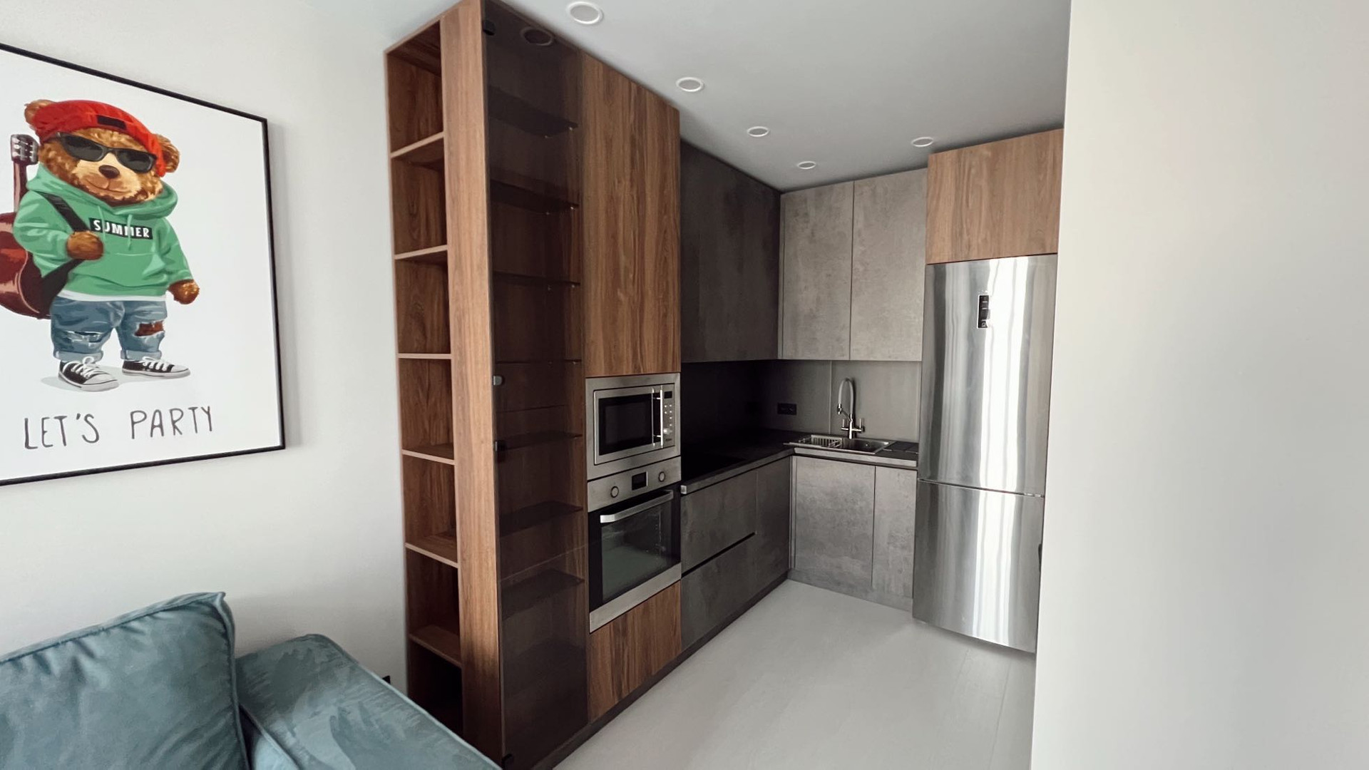Ремонт выполнен с использованием современных качественных строительных и отделочных материалов. Перегородки сбит, окраска стен краской Тикурилла. На полу влагостойкий ламинат 33 класс. Натяжные потолки. В ванной керамогранит, душевая стойка с тропическим душем, и