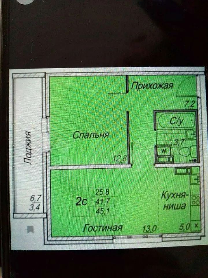 Общая площадь 45.1 м2