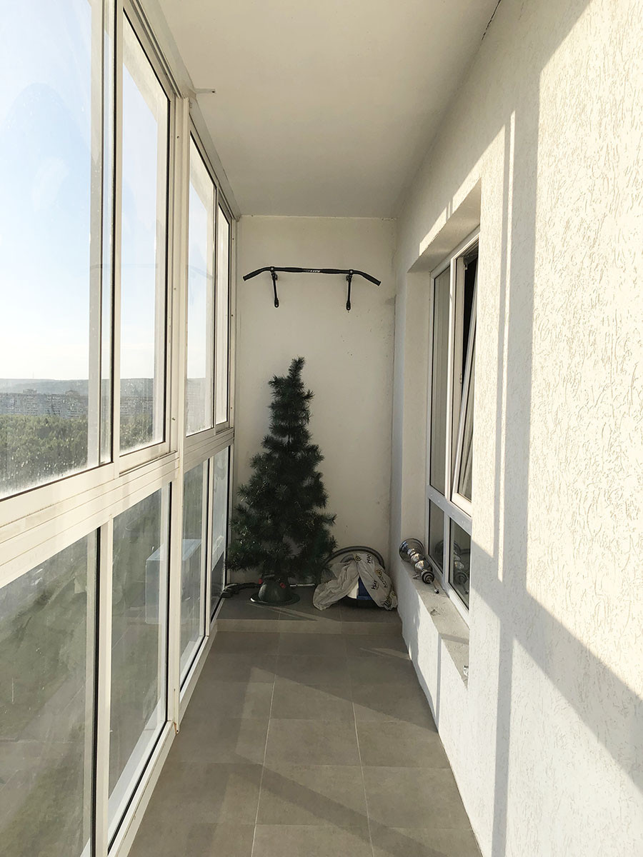 На просторной лоджии, с которой открывается потрясающий вид на город, можно расположить отличную зону отдыха.