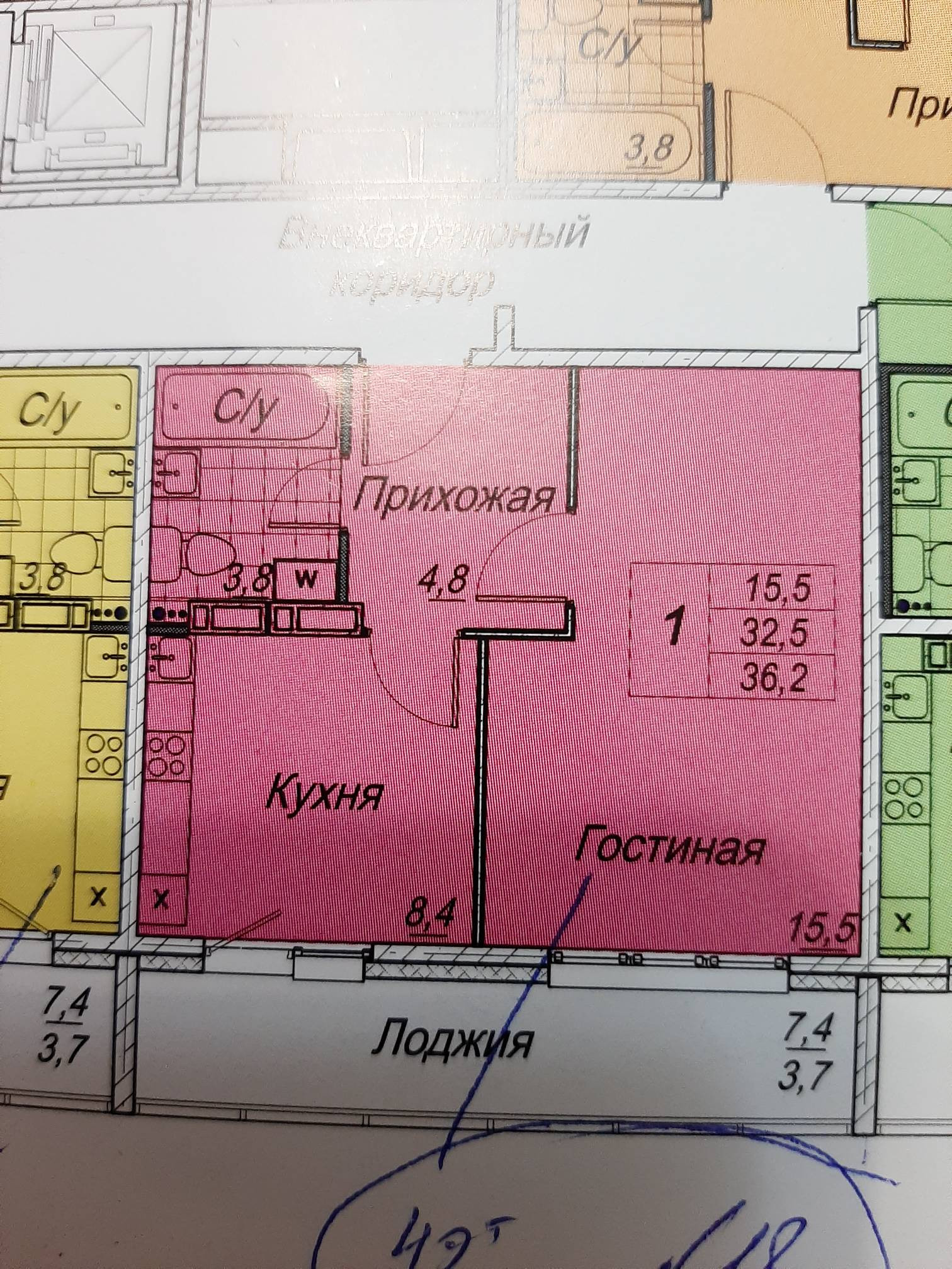 Квартира продается под самоотделку, хороший 4 этаж, кухня- 8,5 кв.м., комната-15,5 кв.м., совмещенный санузел и громадная лоджия-7,4 кв.м.
