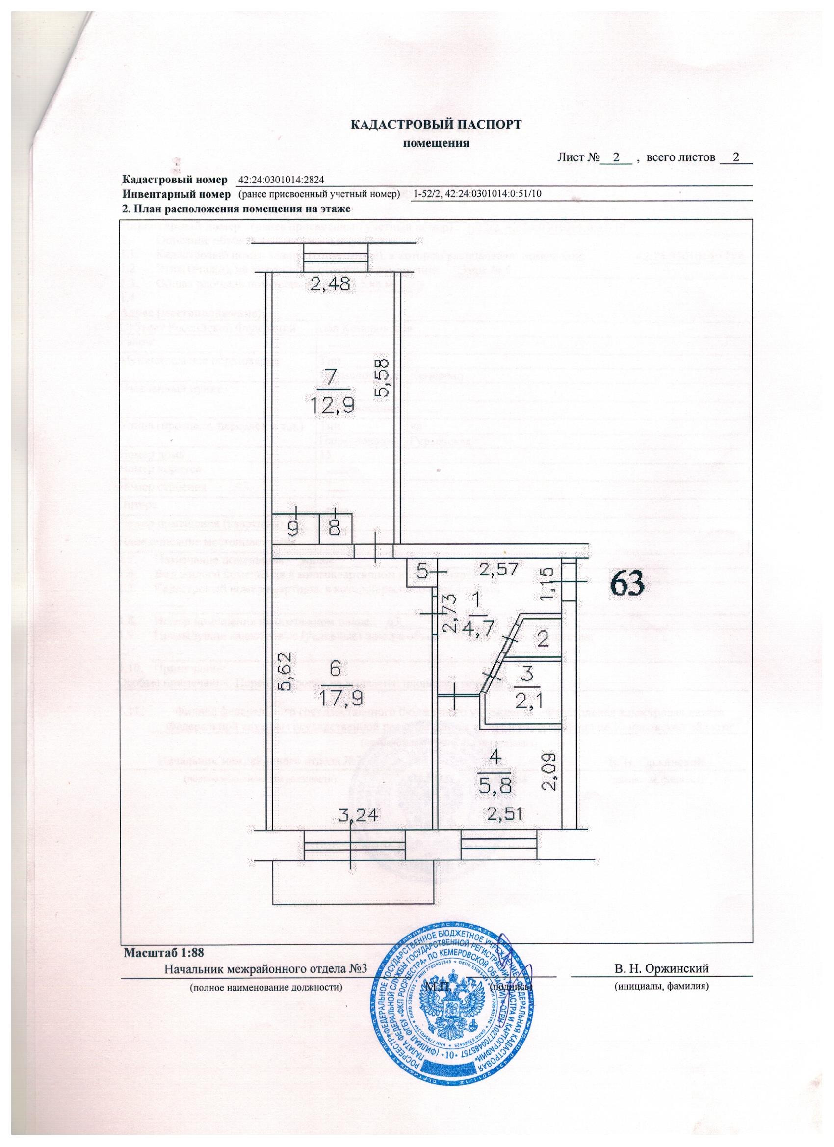 2-комнатная квартира, 45.5 м2, этаж 5 / 5, на продажу в Кемерово, Гурьевская улица, 15