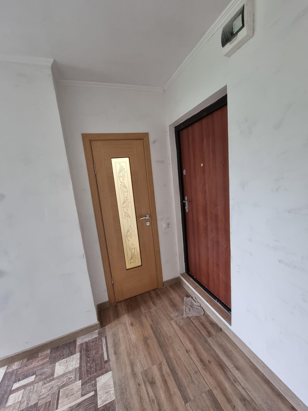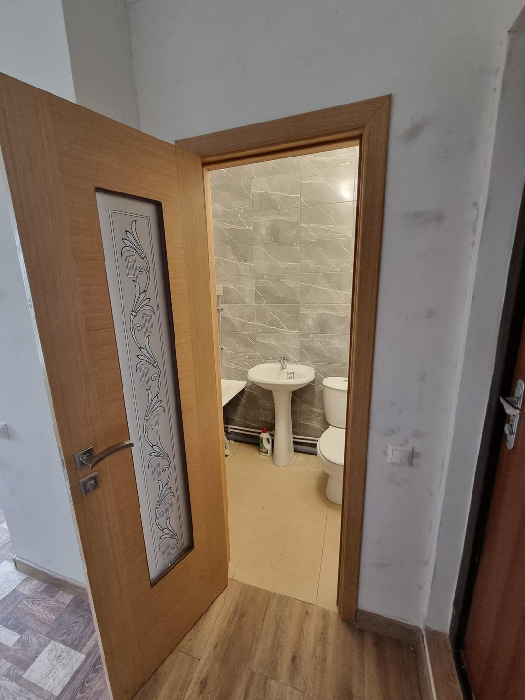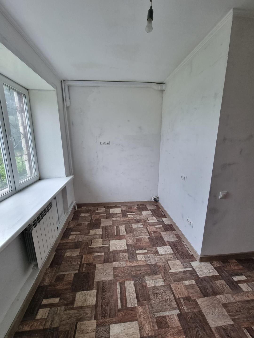 Стены, пол, потолки выровнены. Напольное покрытие: линолеум, керамогранит.