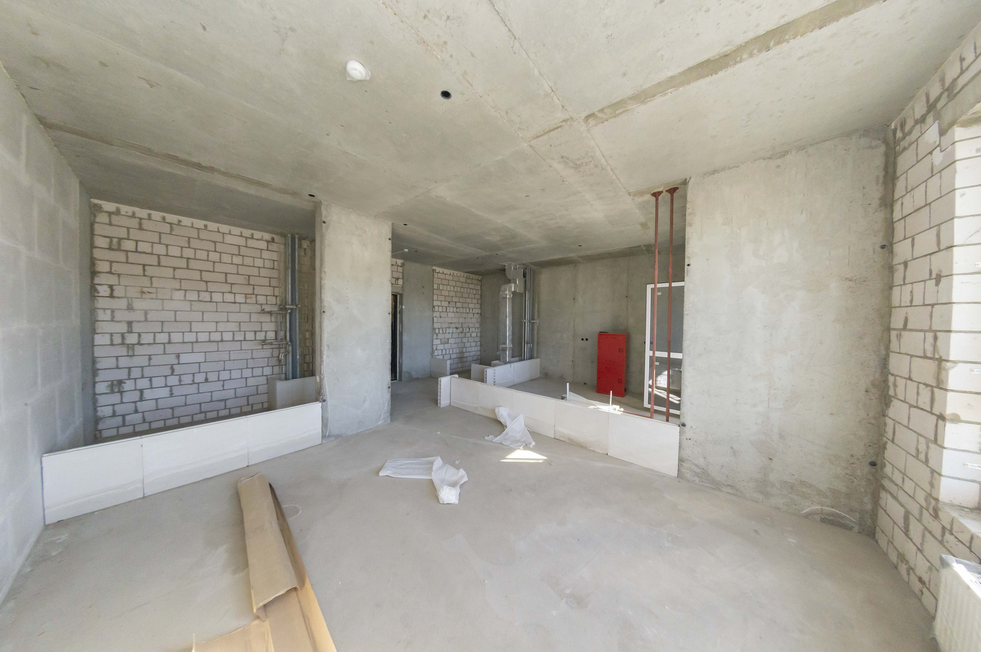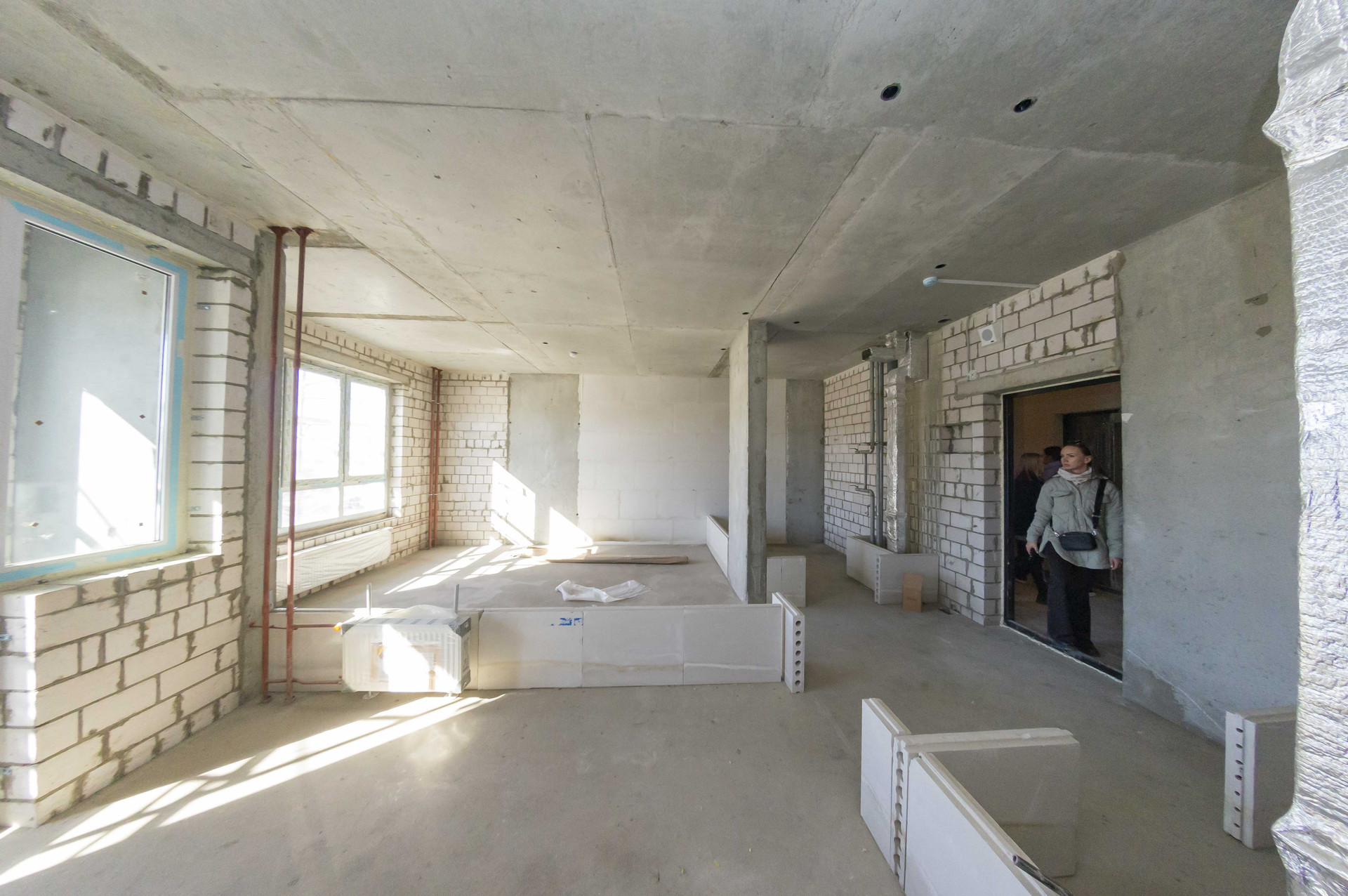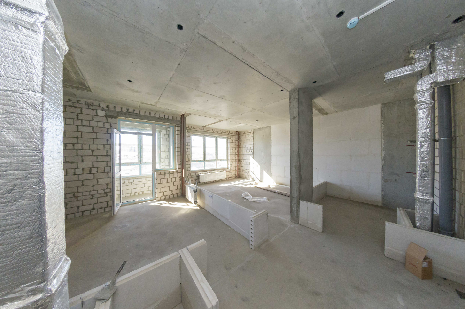 В квартире установлены витражные окна 60 см от пола - можно будет смотреть как самолеты % взлетают и приземляются.