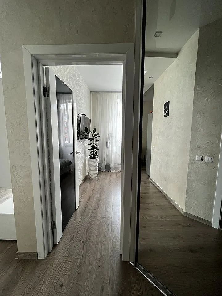 Квартира с видом на лес и осенний бульвар. Отличная планировка: Гостиная совмещена с кухней (27 кв.м) спальня 12 (кв.м), большая гардеробная , просторный совмещенный санузел. В квартире кирпичные перегородки (не сибит и иные дешёвые материалы) сделан хороший ремонт , сантехника марок Grohe и Jacob delafon, на стенах итальянская (декоративная) штукатурка, на полу ламинат , натяжные потолки, светильники розетки и выключатели legrand, кухонный гарнитур остаётся. Дом расположен в конце осеннего бульвара, в окружении леса и озера, не проездной, во дворе большая парковка, за домом спортивная и детская площадки (волейбольная, футбольная , баскетбольная, тренажеры) и парк для отдыха.