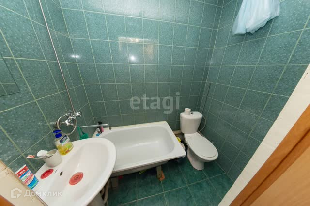 Санузел совмещён: стены и пол в санузле выложены керамической плиткой.