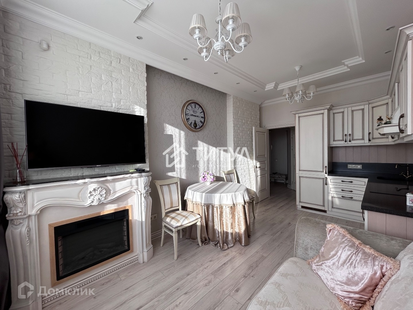 В квартире остается вся мебель и техника, которые присутствуют на фото, кроме дивана в гостиной и двух телевизоров.