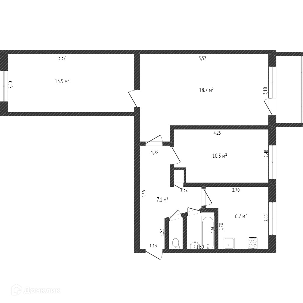 Общая площадь 64 м2