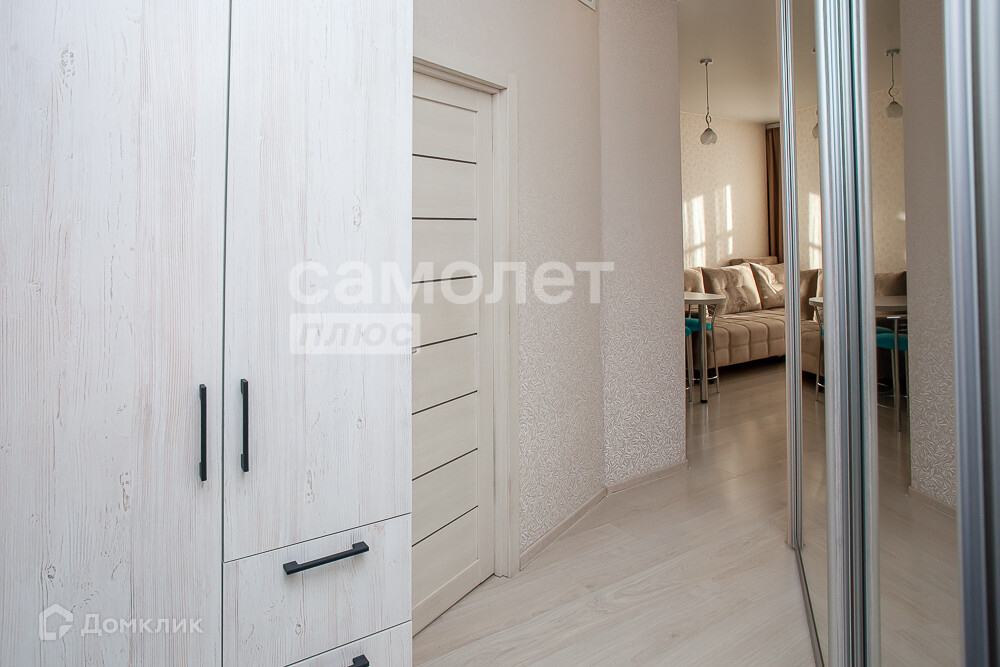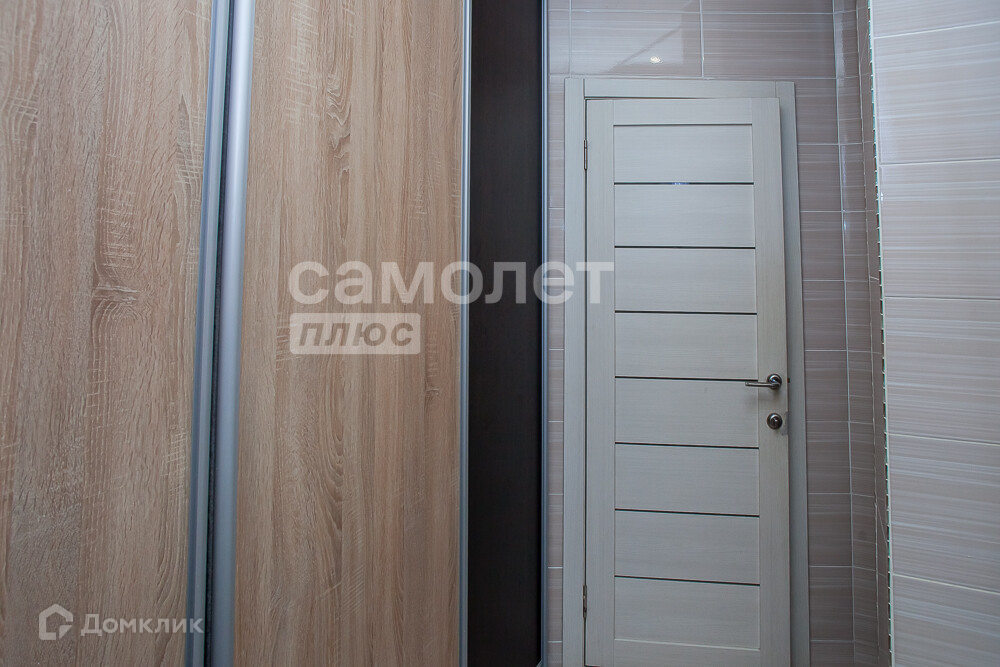 В прихожей (14,2 кв.м.) – большой встроенный шкаф, выделено место для гардеробной или кладовой (в настоящее время, место используется, как спальная зона).