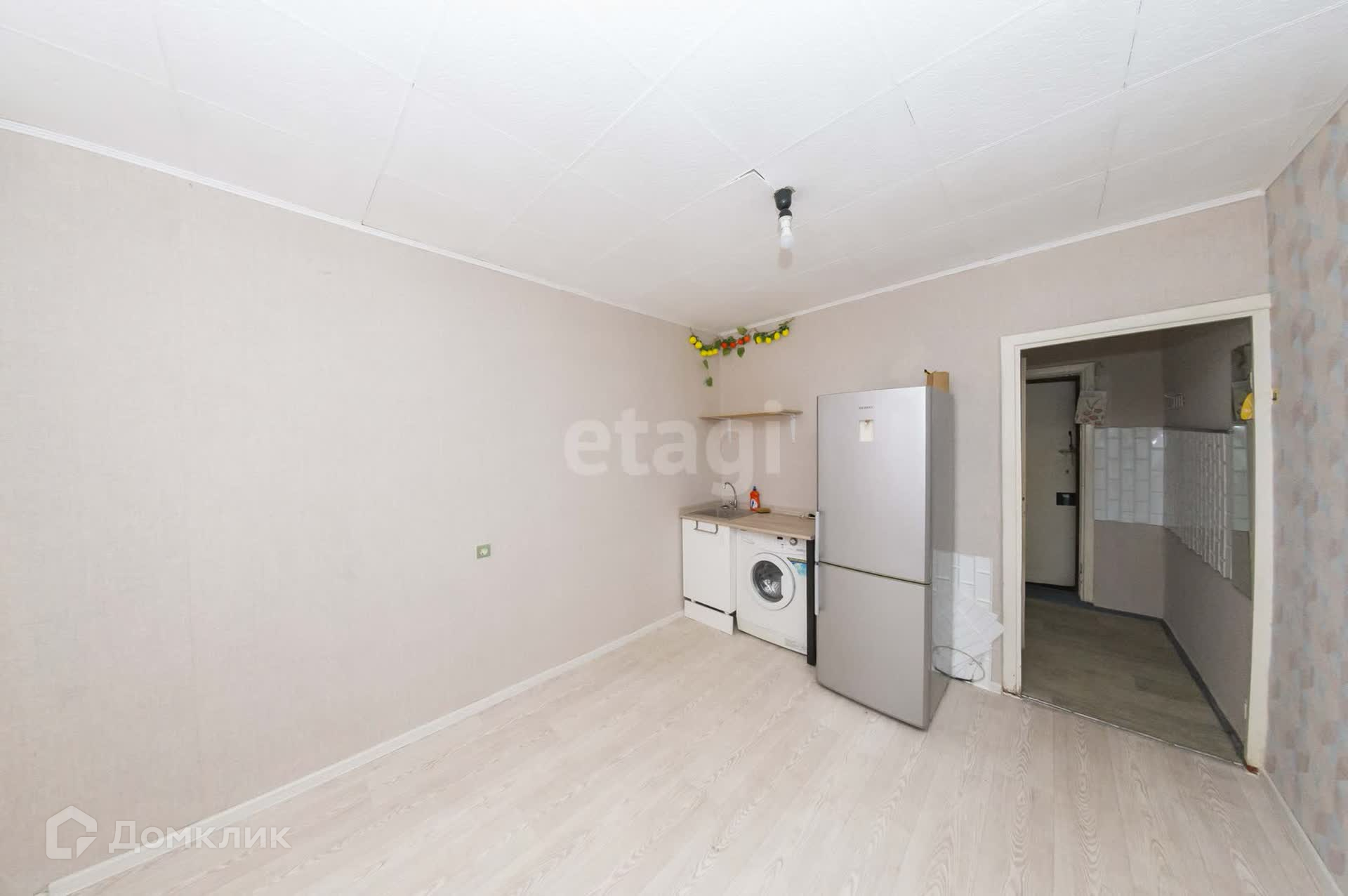 Жилая площадь 12 м2, выделена кухонная зона, выведена вода. В квартире окно пластиковое, на полу линолеум, входная дверь металлическая.