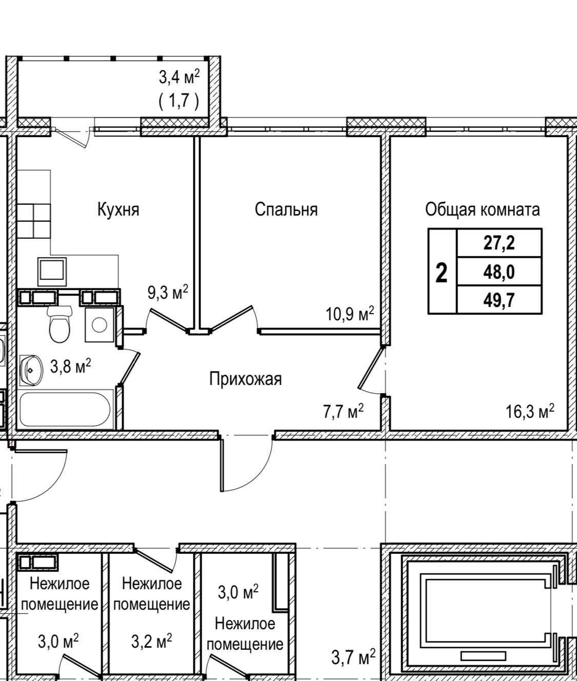 Общая площадь 48.3 м2