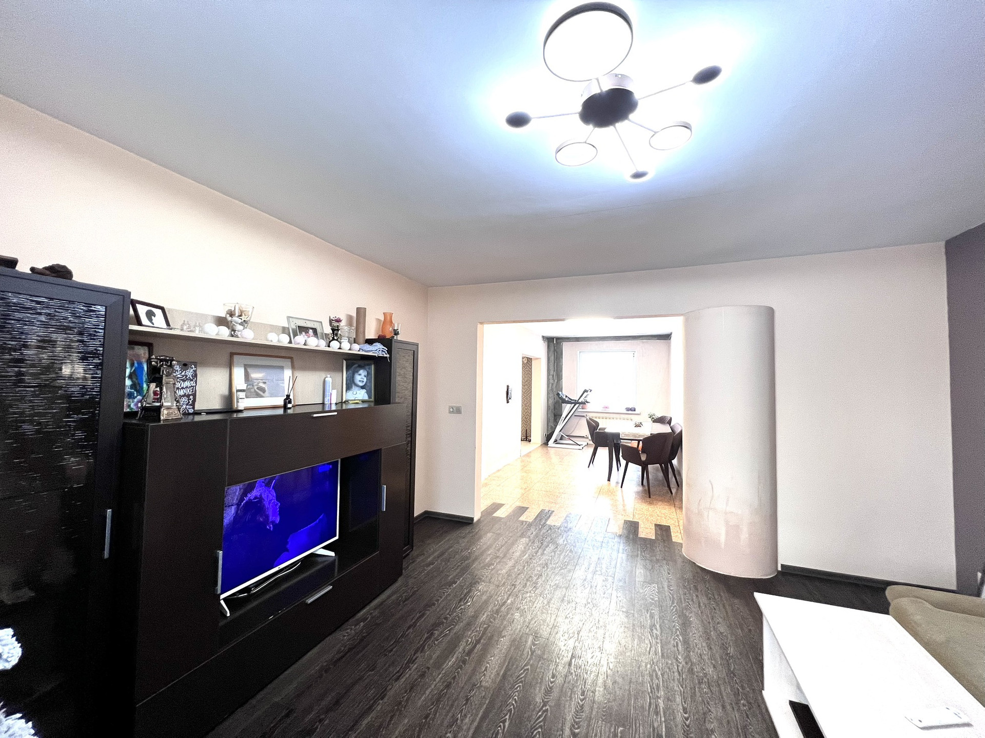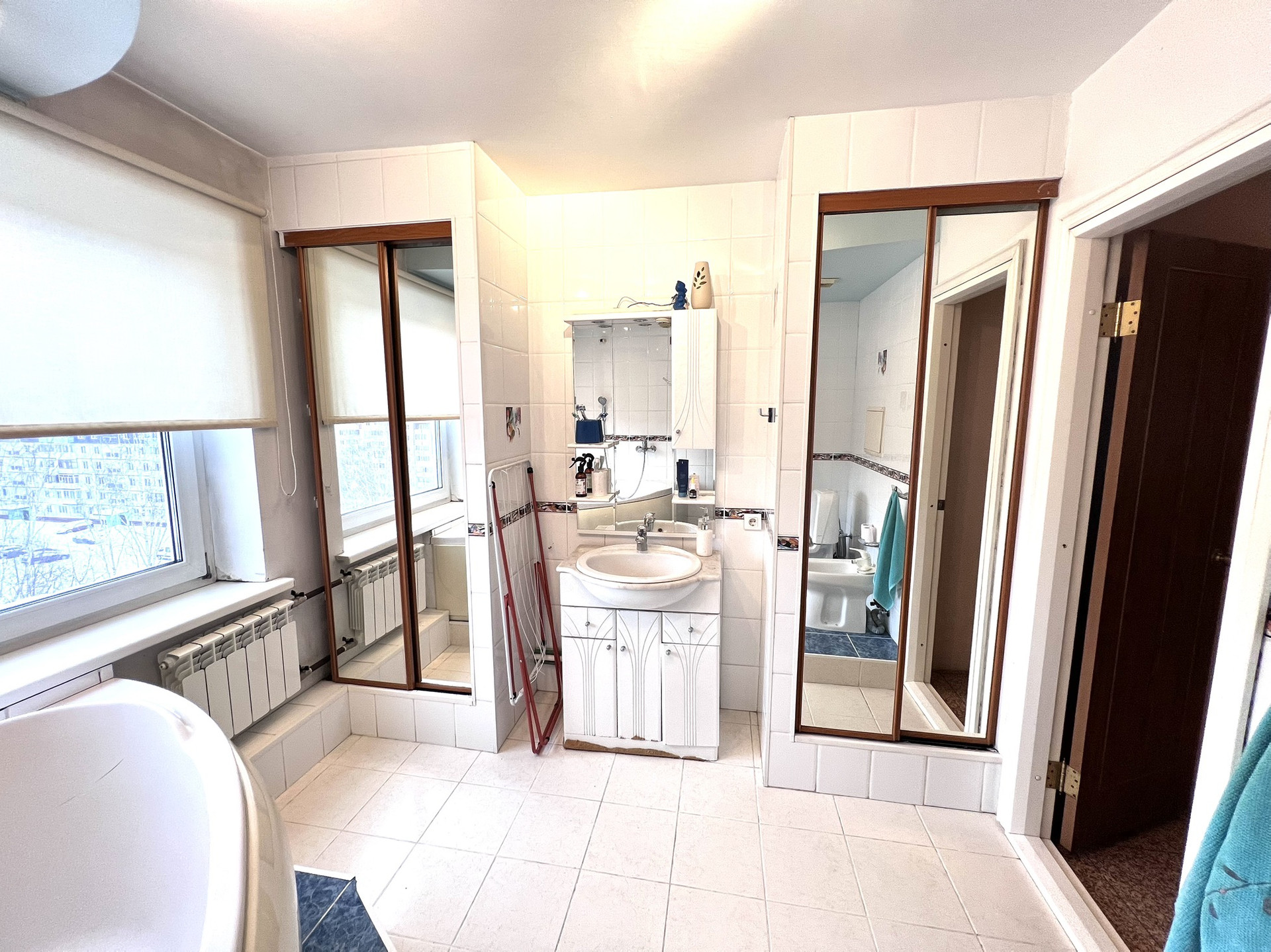 Объединены две квартиры, всё узаконено. В квартире 5 комнат плюс кухня, два сан. узла, 3 лоджии, встроенные шкафы. Ванная комната с окном, отапливаемая, площадью 8,2 кв.м.