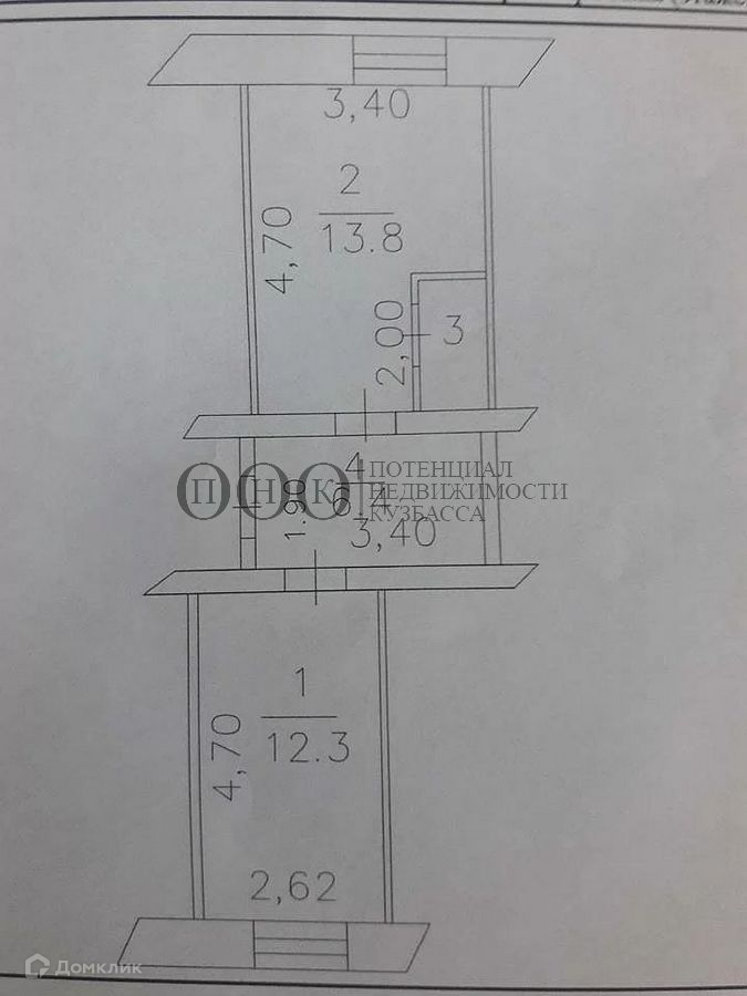1-комнатная квартира, 34.2 м2, этаж 1 / 2, на продажу в Кемерово, Кузнецкий проспект, 262/1