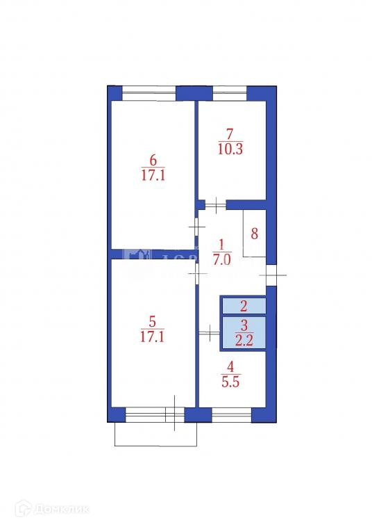 Общая площадь 62.8 м2