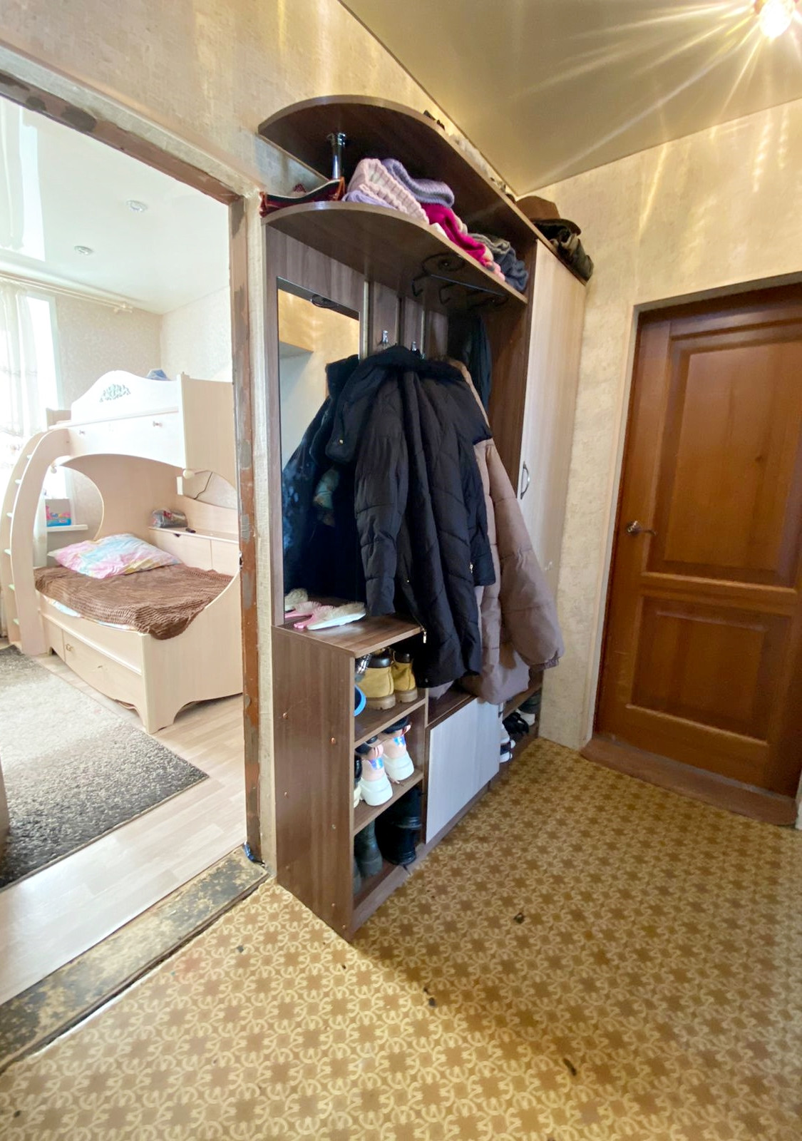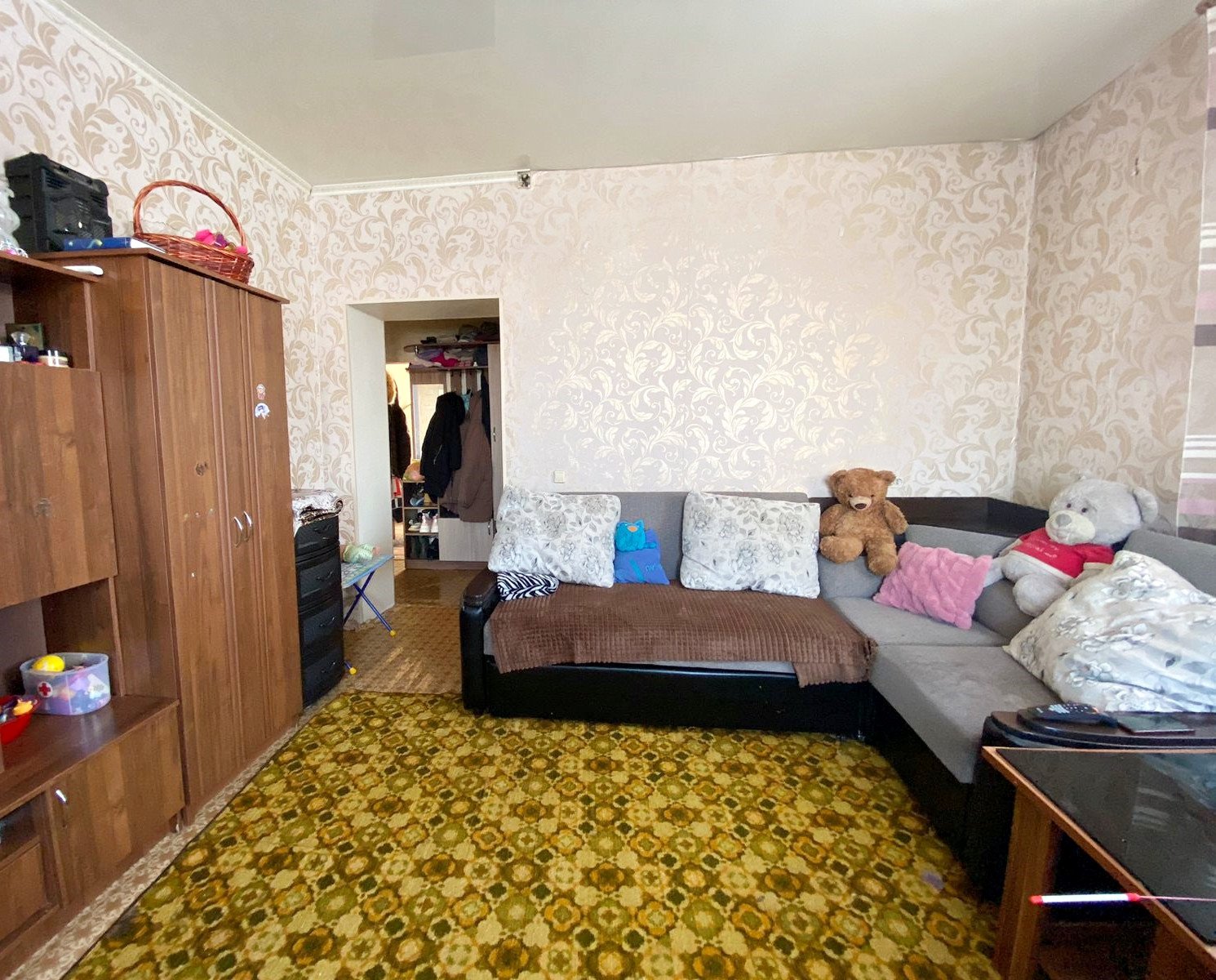 Если нужно, то остается: двухяросная детская кровать, двуспальная кровать и шкаф, в зале стенка и журнальный столик, на кухне угловой диван+стол, тумба с раковиной.