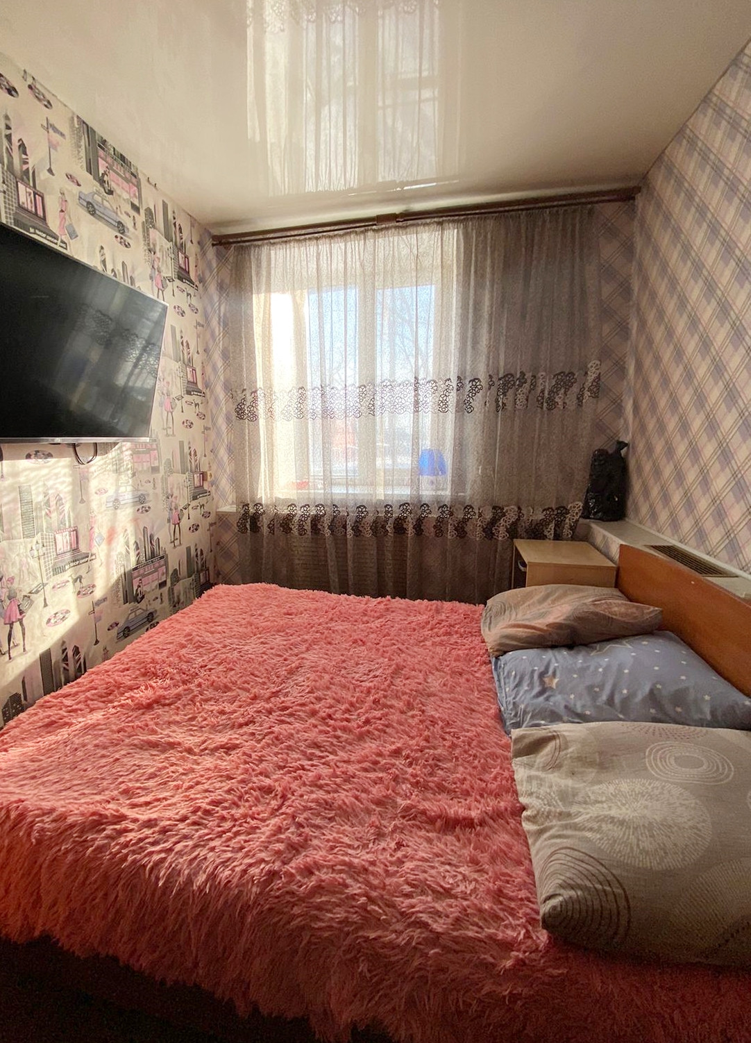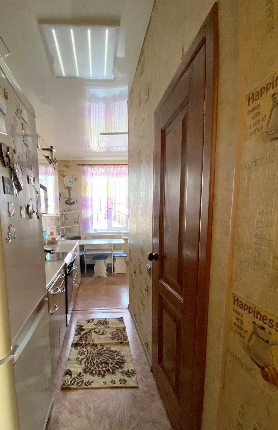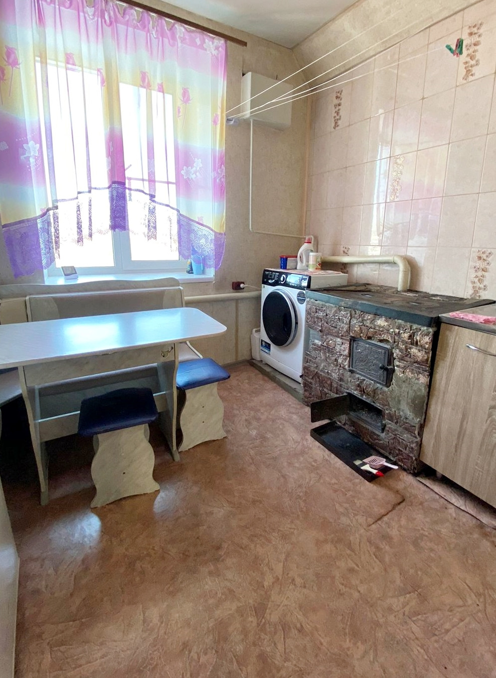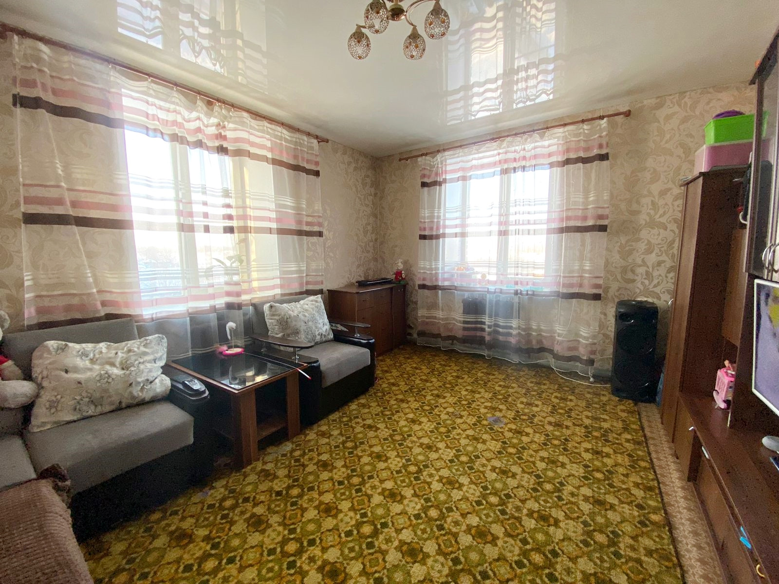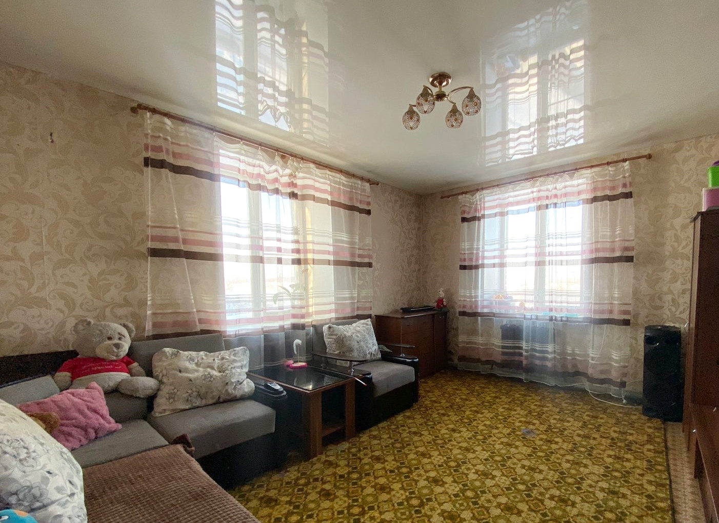 2/2 этаж, 56/39/7 кв.м.,стекл.пакет, натяжные потолки (везде), сан.узел совмещен, душевая кабина, бойлер на 50л, отопление новое (печное),чугунный радиатор.
