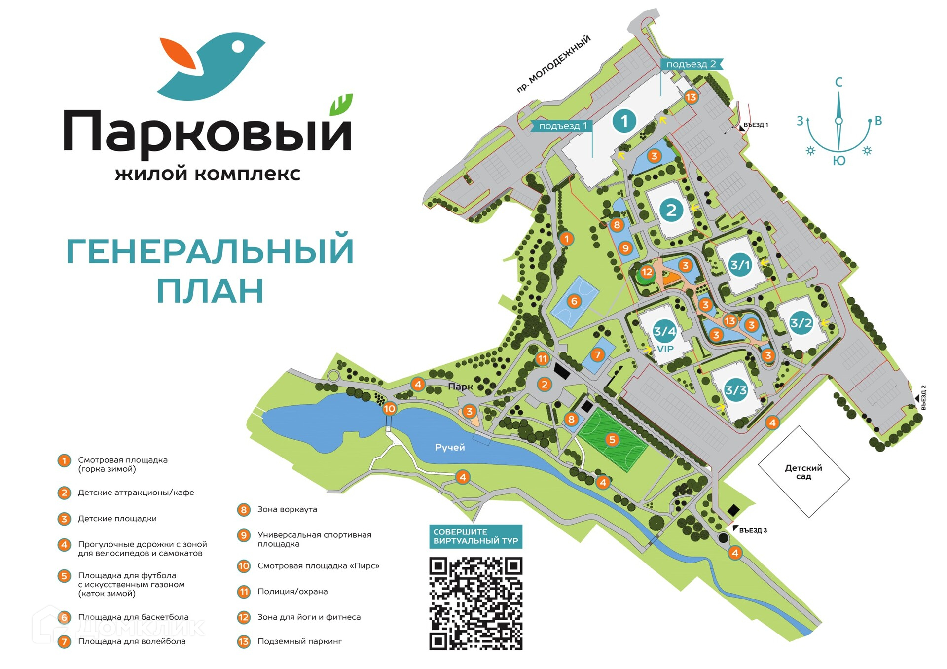 - Современные детские площадки на разные возраста, спортивные объекты