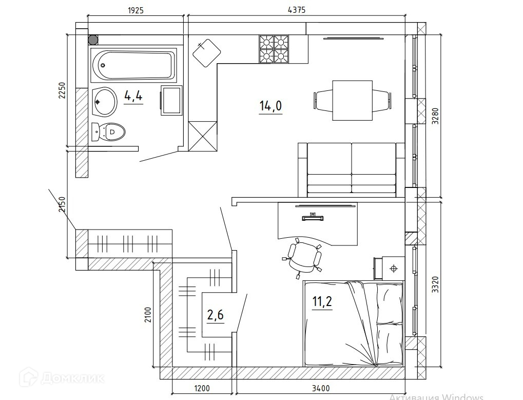 Площадь кухни 14 м2