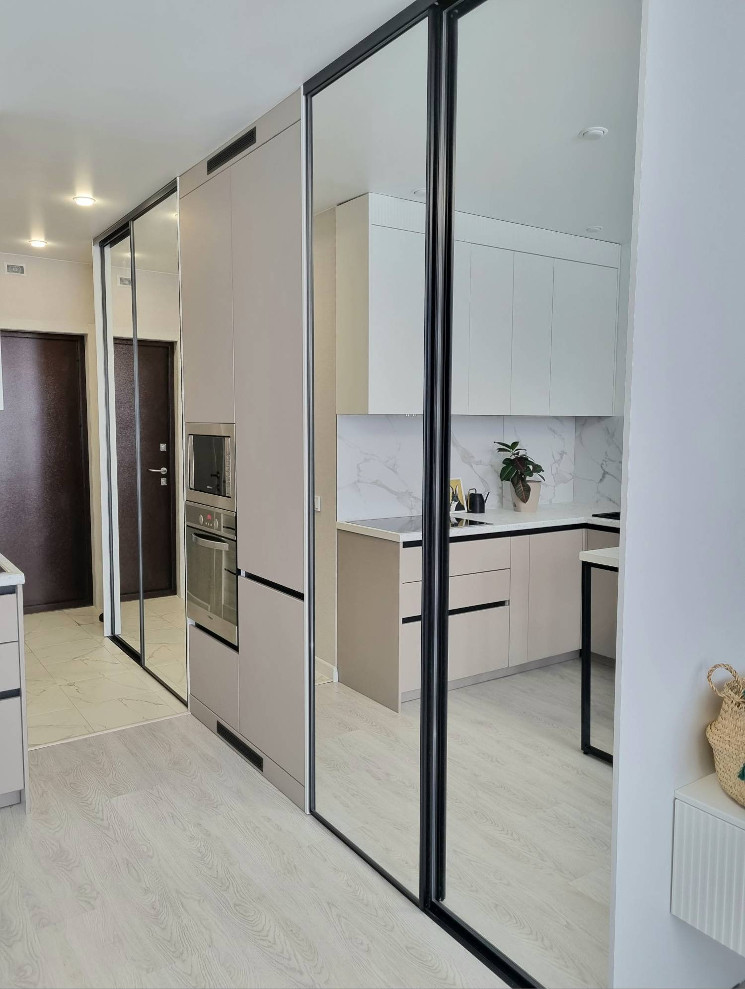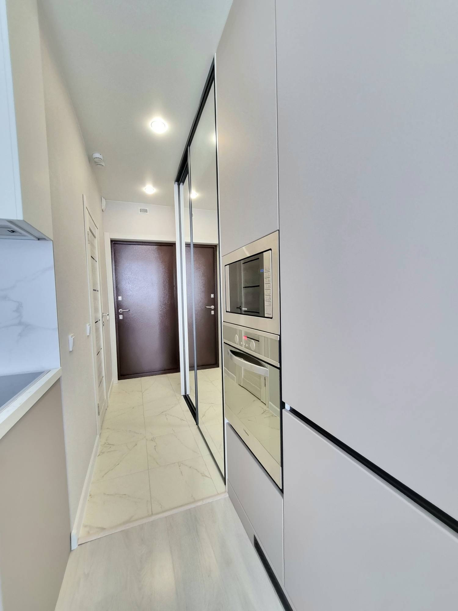 Дом был построен в 2022 году, и в квартире был выполнен качественный ремонт в современном стиле. Пространство организовано с учетом всех потребностей жильцов, включая достаточно большую зону для хранения вещей. Вся мебель и техника, включая холодильник, стиральную машину и кухонную встройку, остаются в квартире.