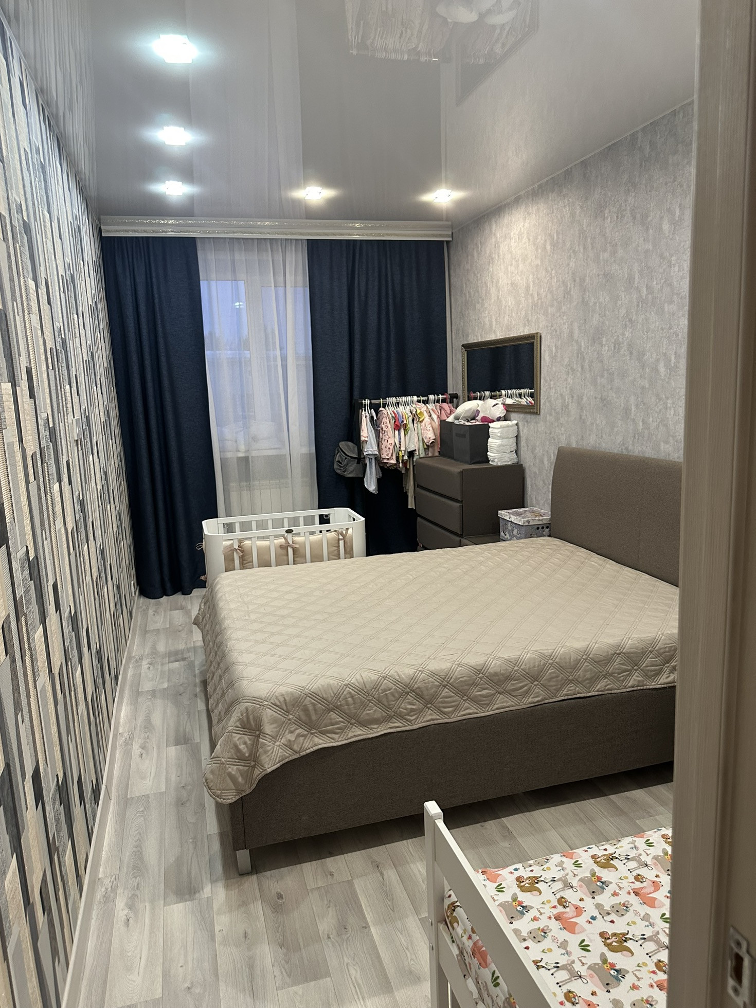 Квартира в идеальном состоянии,после кап.ремонта.Натяжные потолки, встроен шкаф-купе,пол выровнен заливной смесью, покрыт линолиумом, новая эл.проводка.Стены и пол со звукоизоляцией, балкон застеклен пластиком и отделан внутри. Новые двери, сан.техника в идеальном состоянии. В сан.узле установлена сильная вытяжка с отдельным включением.