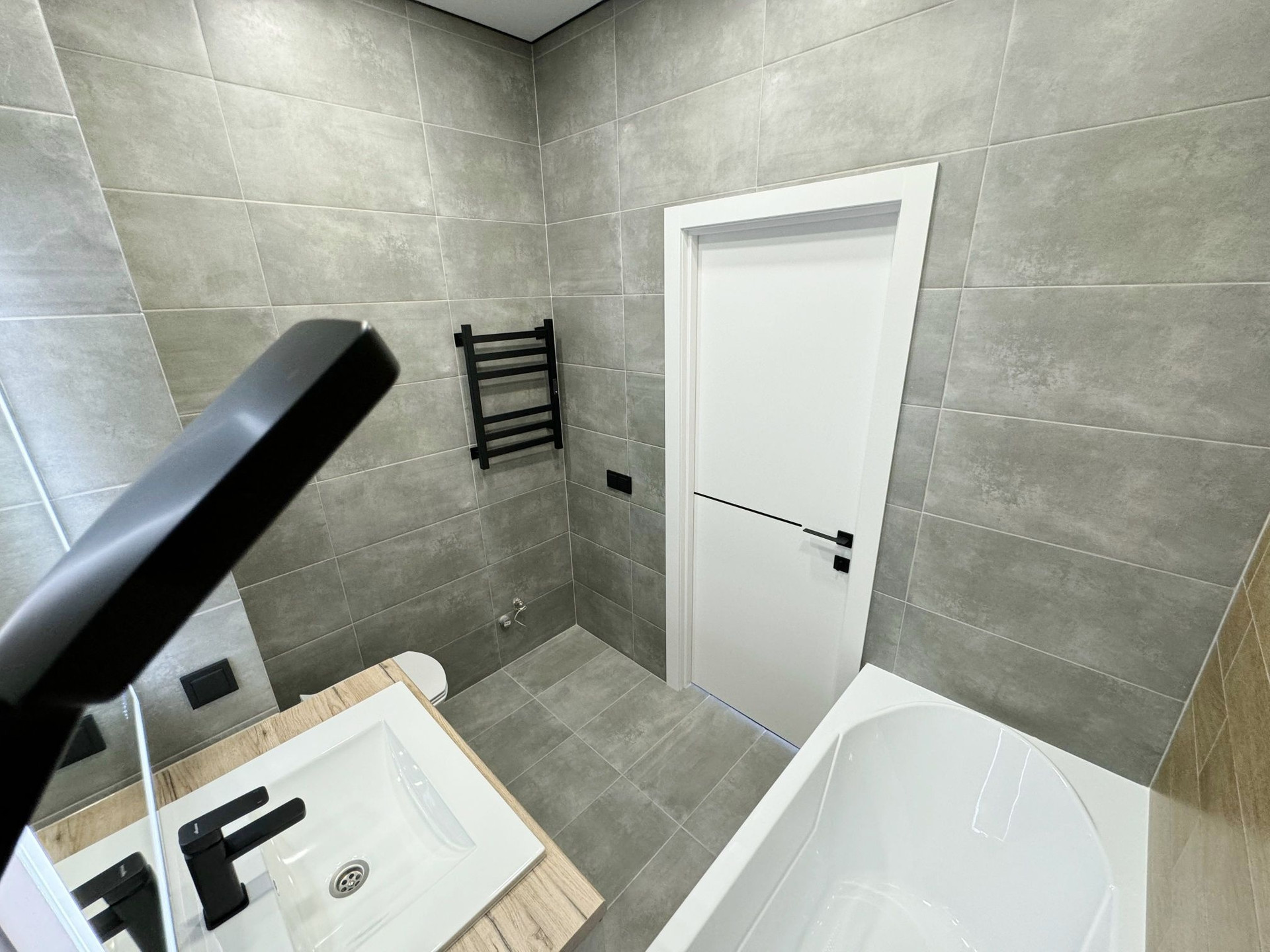 • в сан.узле пол и стены керамогранит, медная подводка;