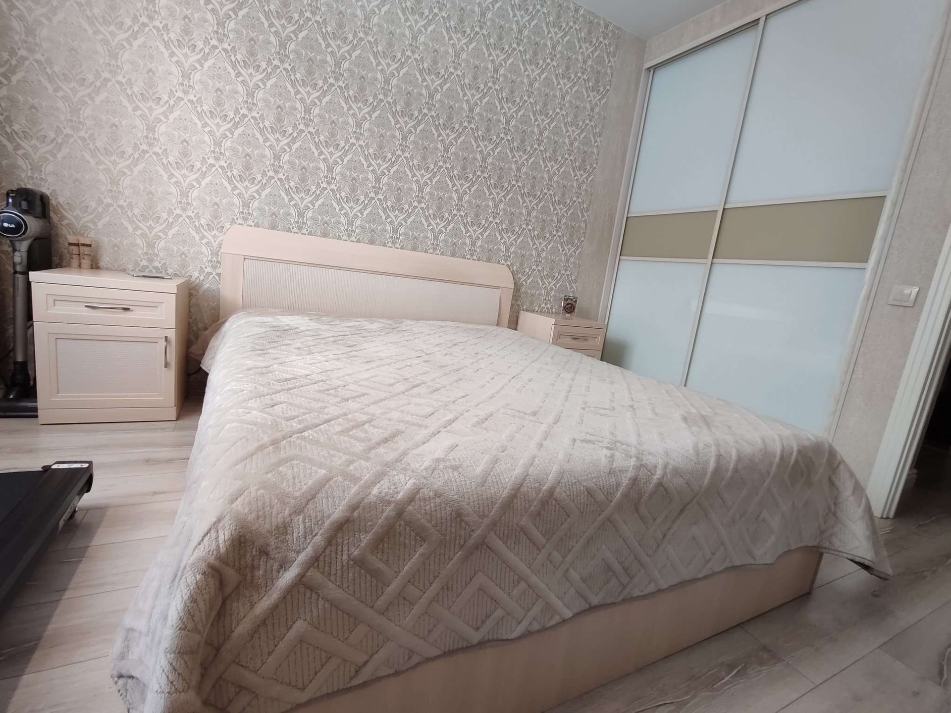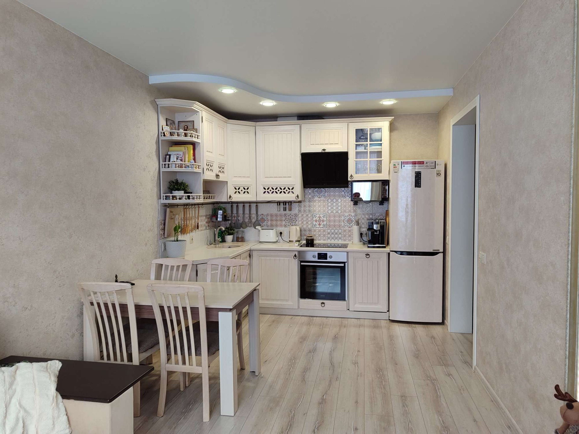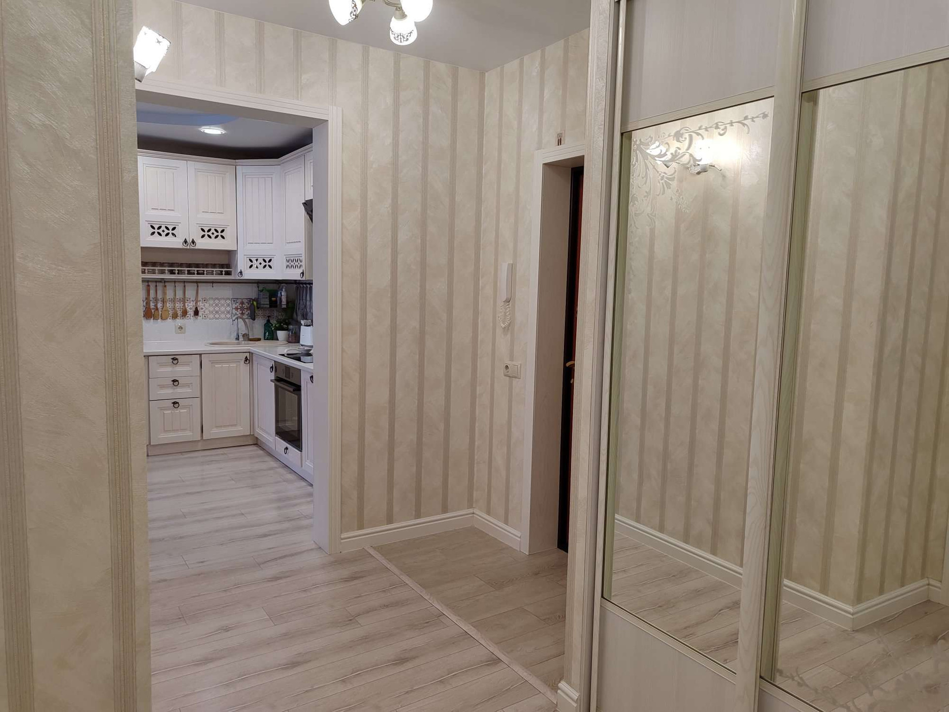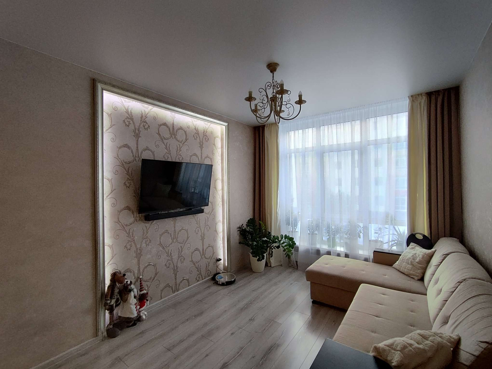 Прекрасный вариант 3-х комнатной квартиры с кухней-студией, отлично подойдёт для семьи с детьми. Если Вы ищете квартиру, с двумя изолированными комнатами и просторной студией с кухонной зоной, при этом для Вас важным моментом является качество ремонта и использованные отделочные материалы, то это именно Ваш вариант. В квартире выполнен ремонт, с использованием дорогих отделочных материалов. На стенах итальянские обои в нейтральных тонах, на полу ламинат, потолок во всех комнатах натяжной, в зоне кухни и в спальнях в районе окон двухуровневый, с подсветкой, в санузле по всему периметру керамогранит. В квартире остается вся мебель, люстры, светильники, шторы, техника: стиральная машина, холодильник, посудомоечная машина, вытяжной шкаф, варочная панель, духовой шкаф.