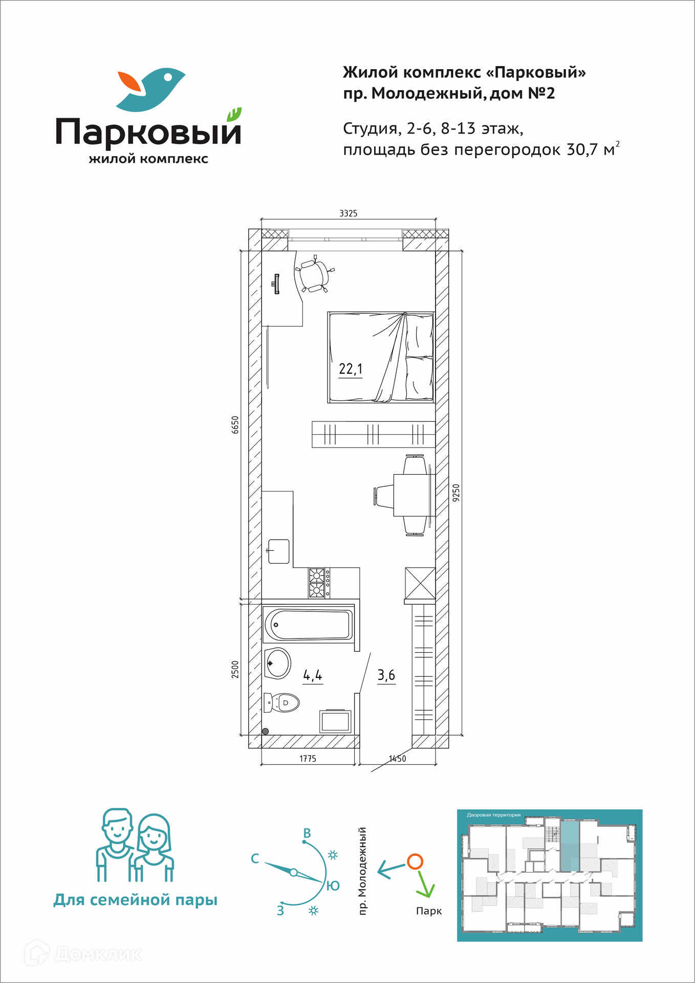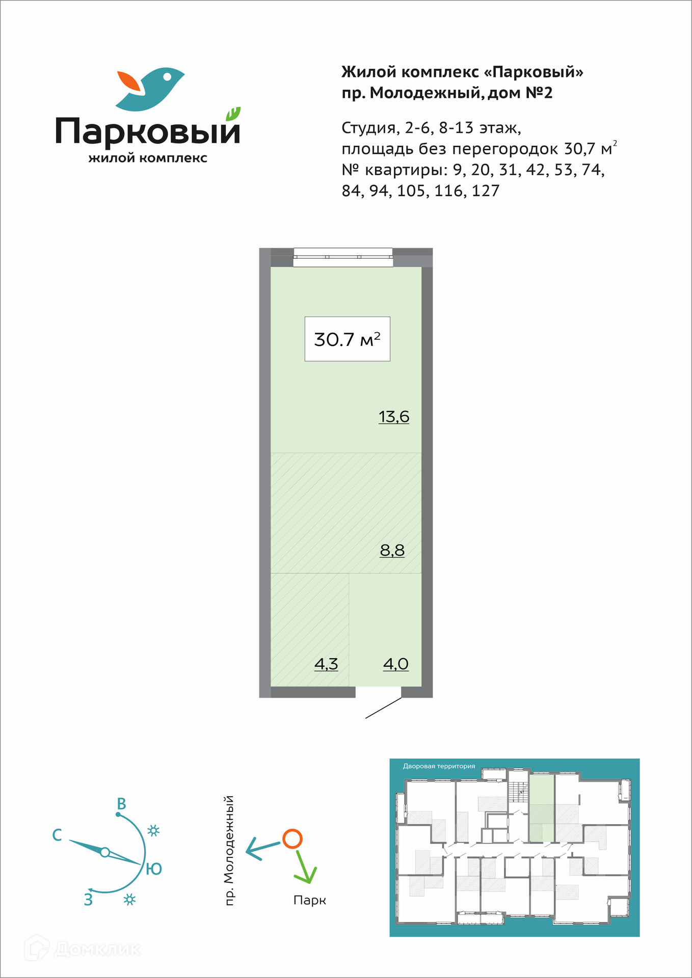 Квартира студия, 30.7 м2, этаж 9 / 15, на продажу в Кемерово, Молодёжный проспект, 19А