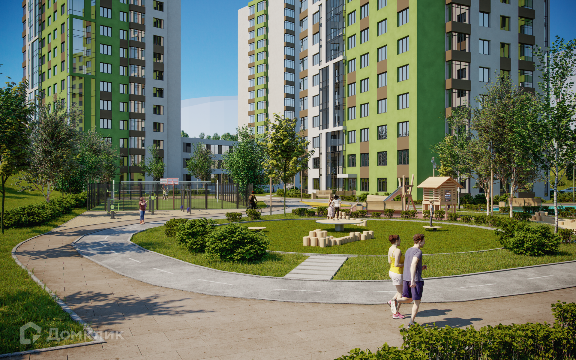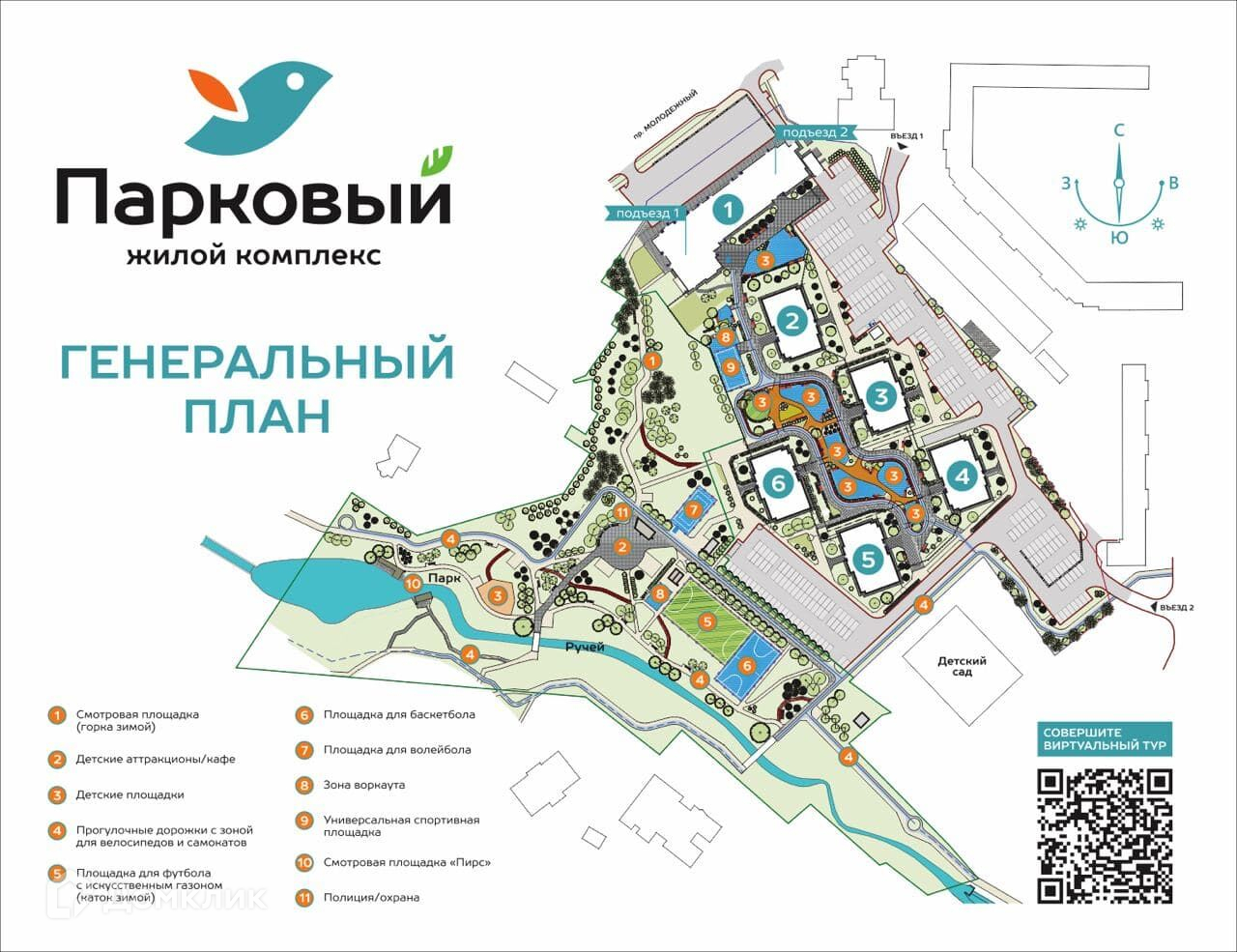 - Современные детские площадки на разные возраста, спортивные объекты