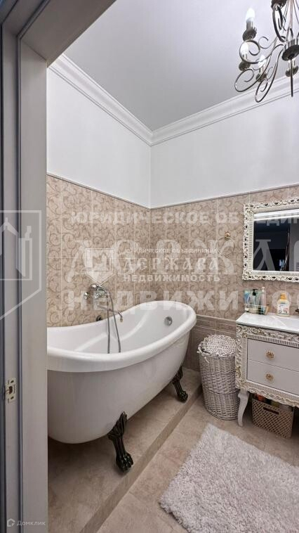 Обратите внимание на уборную, роскошную ванную на ножках, здесь эффектно вписывается люстра.