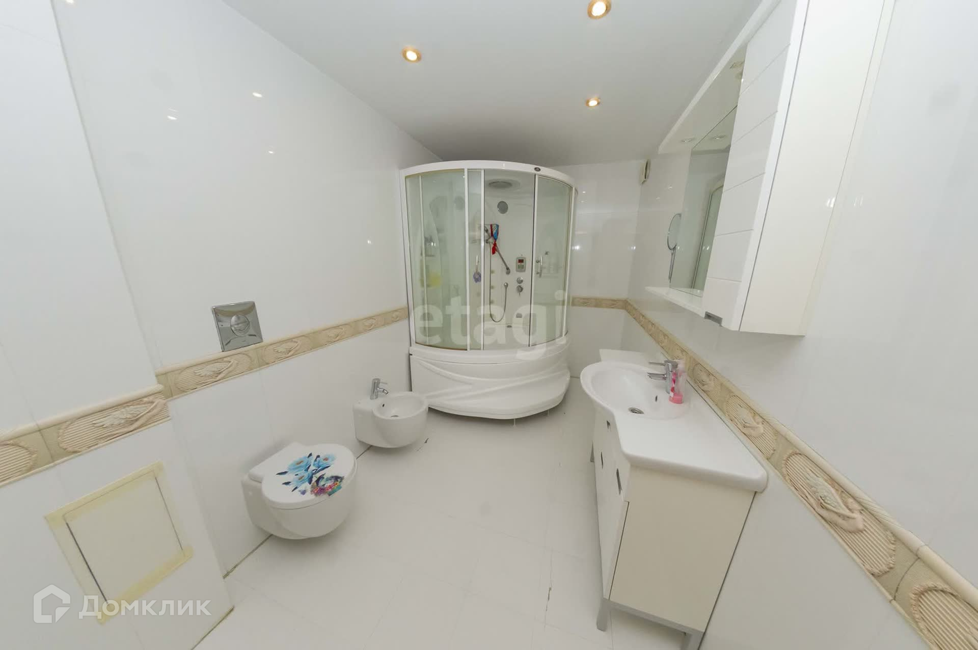 -просторная ванная комната с биде, инсталляцией, душевой кабиной;
