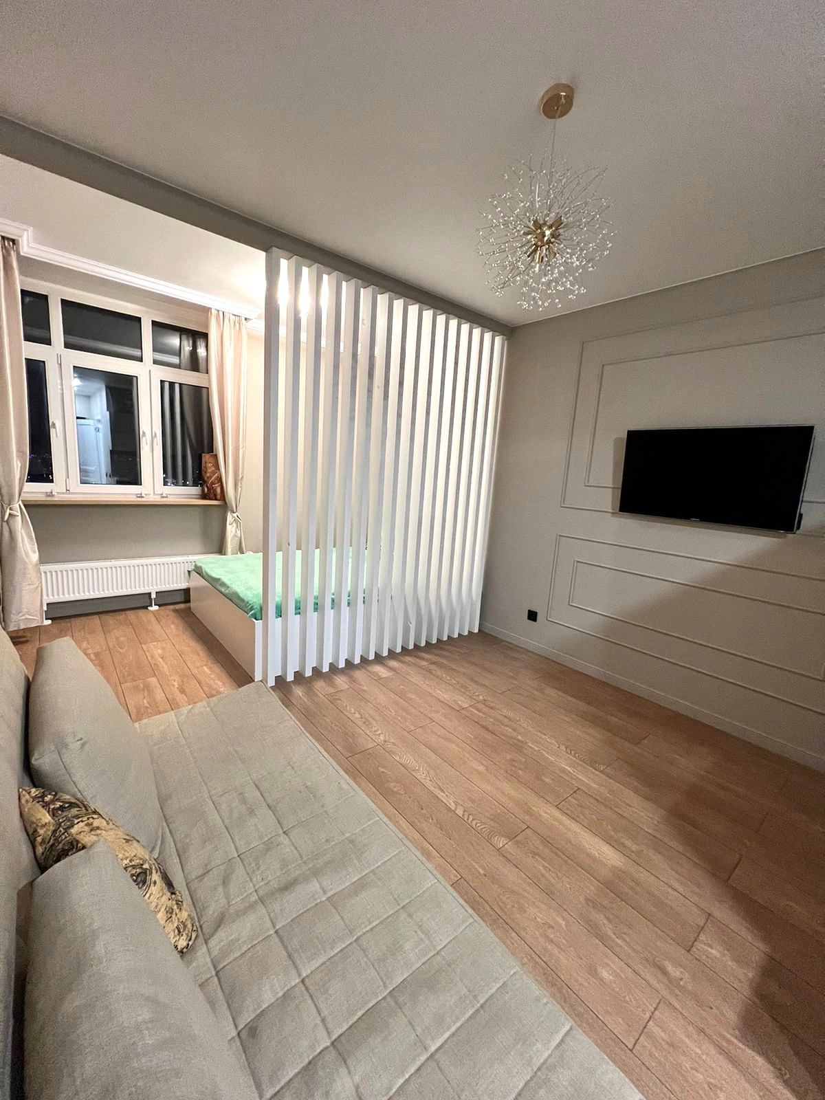 В квартире выполнен современный дизайнерский ремонт, использовали только высококачественные материалы, чтобы создать уютную и стильную обстановку.