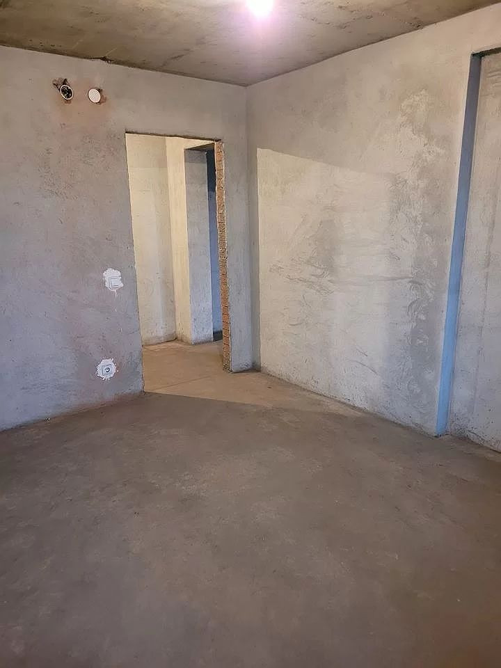 Стены оштукатурены, сделана электропроводка.