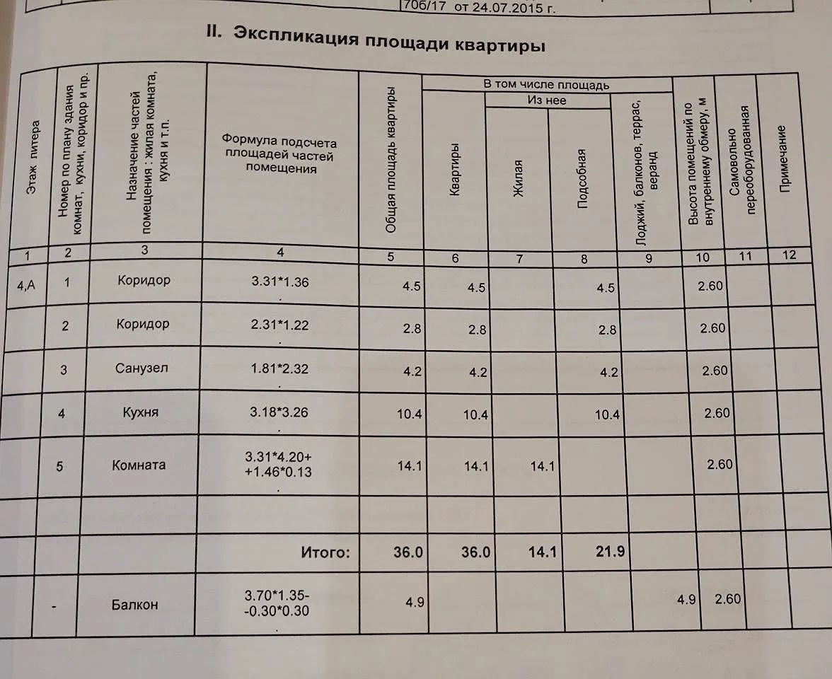 Общая площадь 36 м2