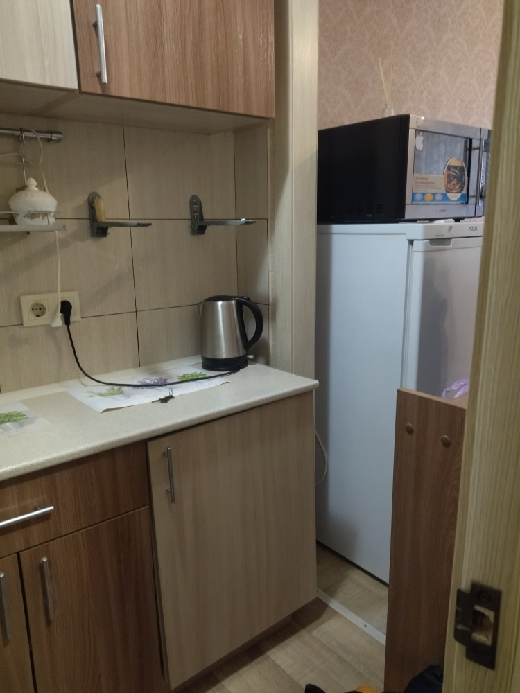 Остаётся ХОРОШАЯ МЕБЕЛЬ, сделанная на заказ под размеры комнаты (шкаф, кухонный гарнитур) На самом деле, очень хорошая гостиночка! ЗАХОДИ ЖИВИ!