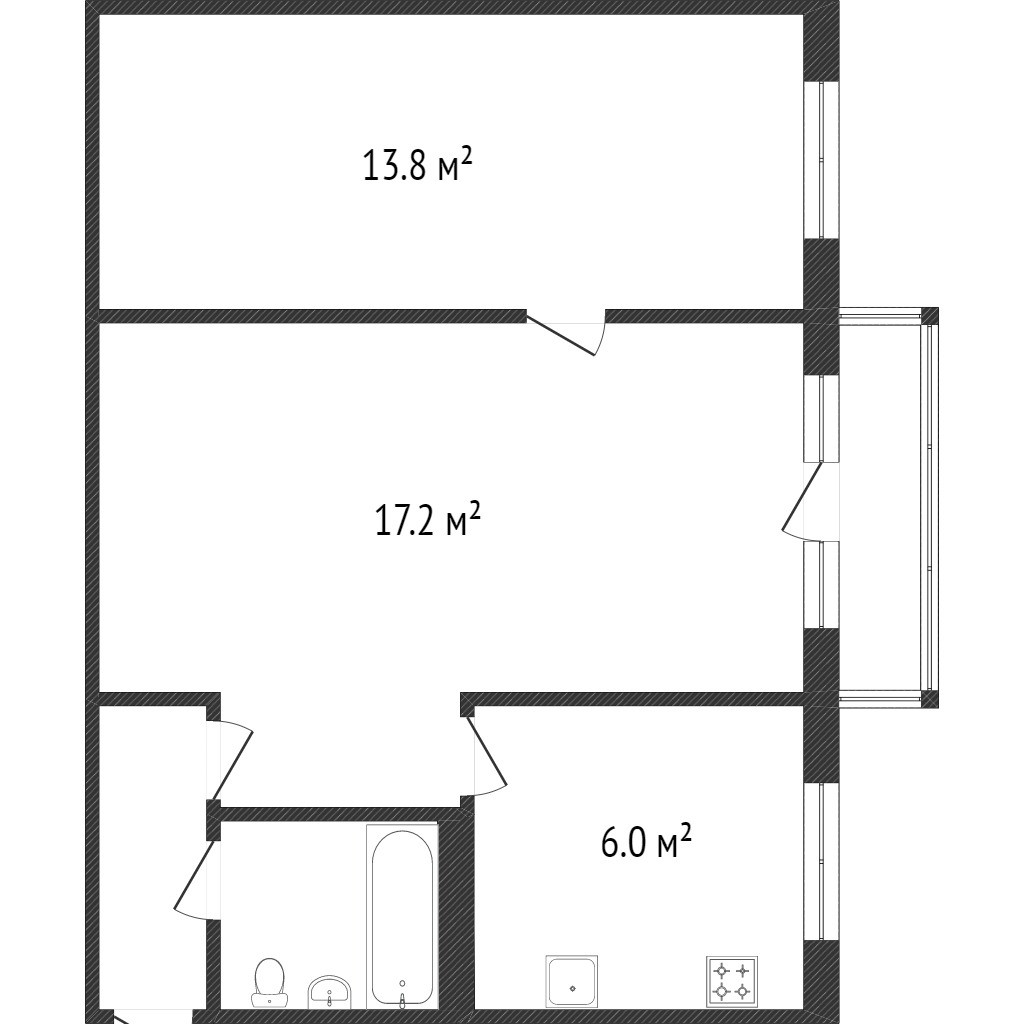 Общая площадь 44.3 м2