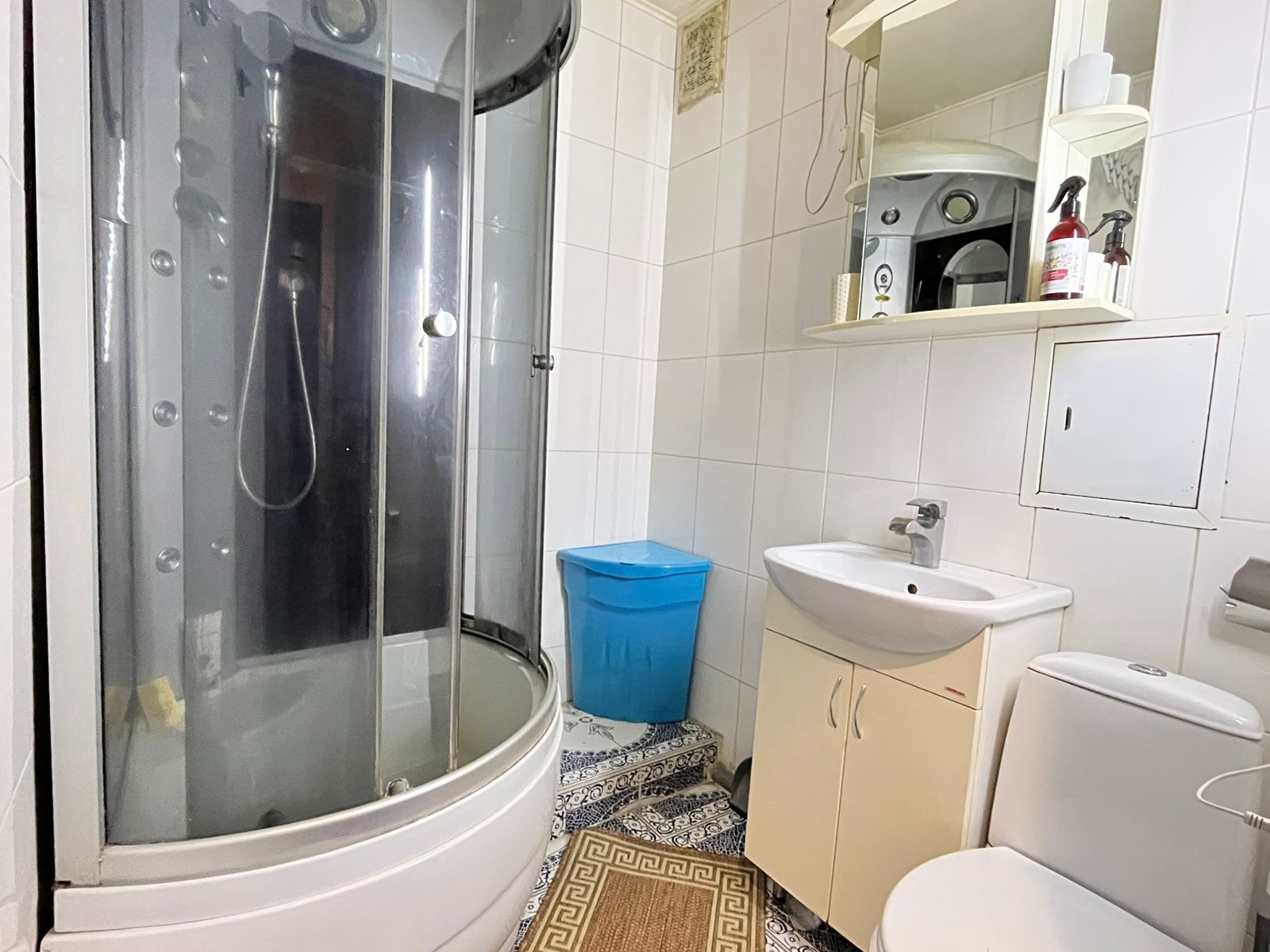 Квартира в хорошем состоянии, не требует вложений. Жилая площадь составляет 18 квадратных метров, что идеально подходит для одного человека или молодой пары. Санузел совмещённый (кафель до потолка), установлена душевая кабина, что является практичным решением для экономии пространства.