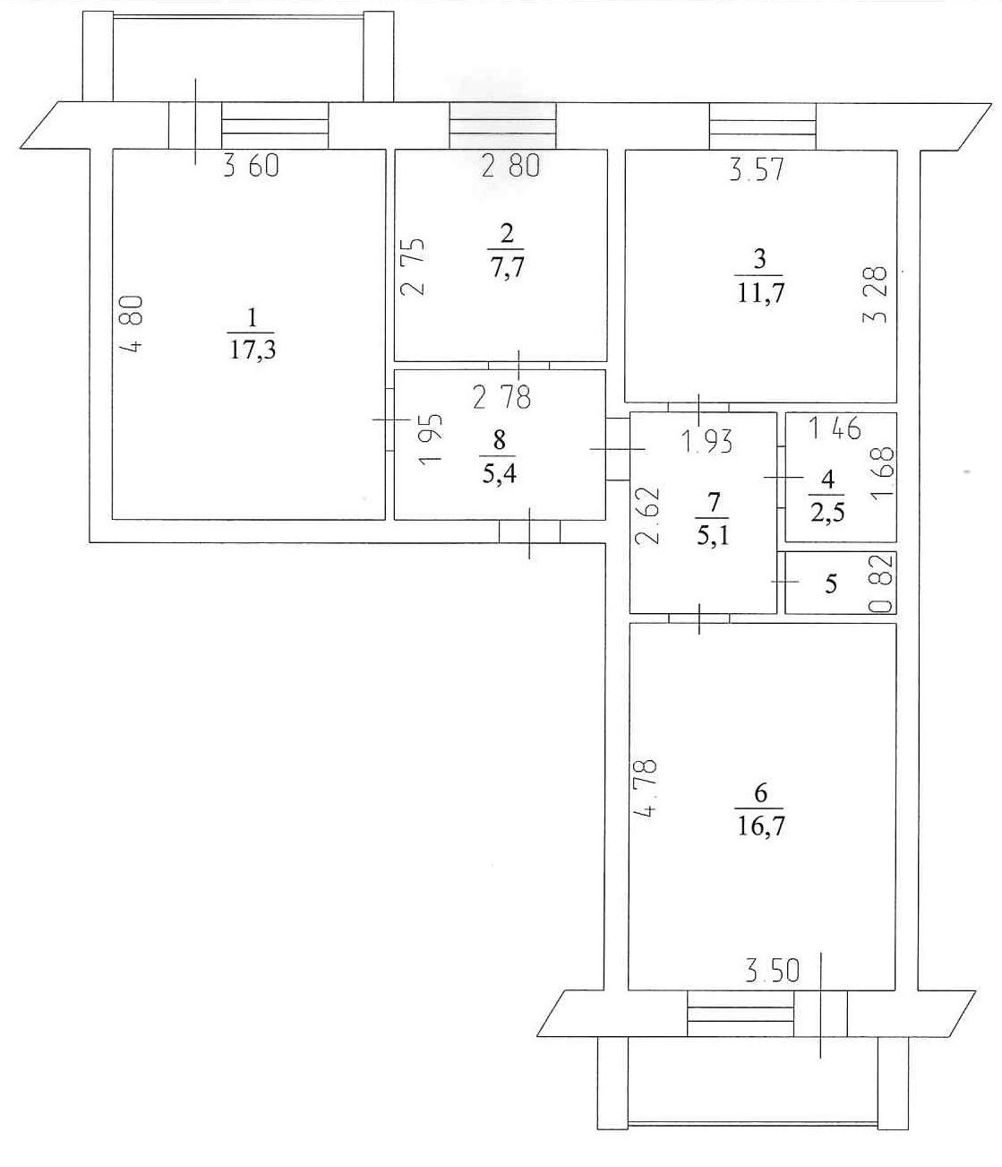 Площадь кухни 7.7 м2