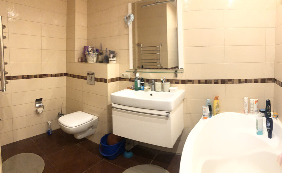 В квартире удобная планировка. Спальни изолированные, расположены по разные стороны коридора, гостиная совмещена с кухней, из которой выход на большой балкон, 2 с/узла: малый с душем и большой с угловой ванной, раковиной и унитазом.